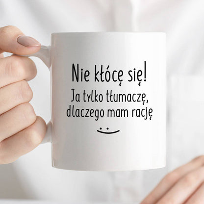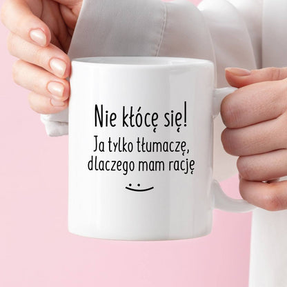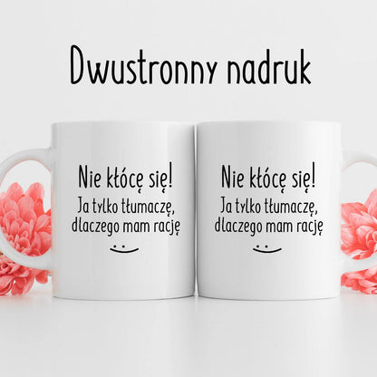 Kubek z nadrukiem "Nie kłócę się! Ja tylko tłumaczę, dlaczego mam rację" FB