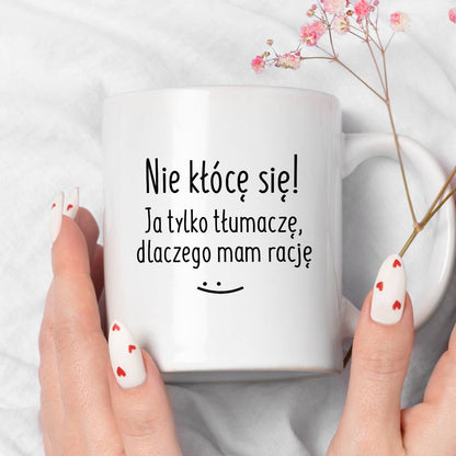 Kubek z nadrukiem "Nie kłócę się! Ja tylko tłumaczę, dlaczego mam rację" - DZIEŃ KOBIET 🌸