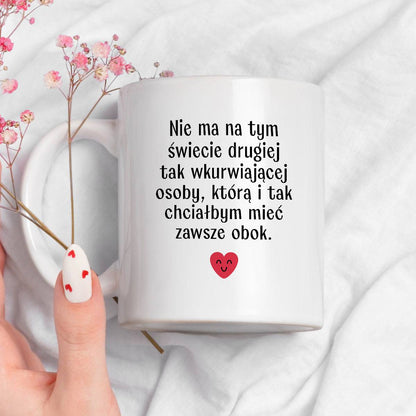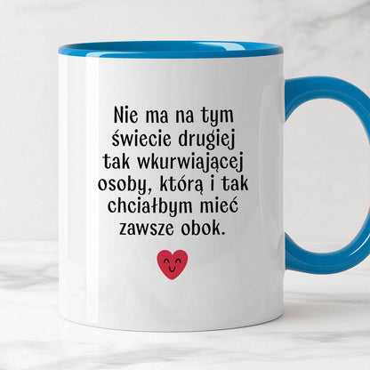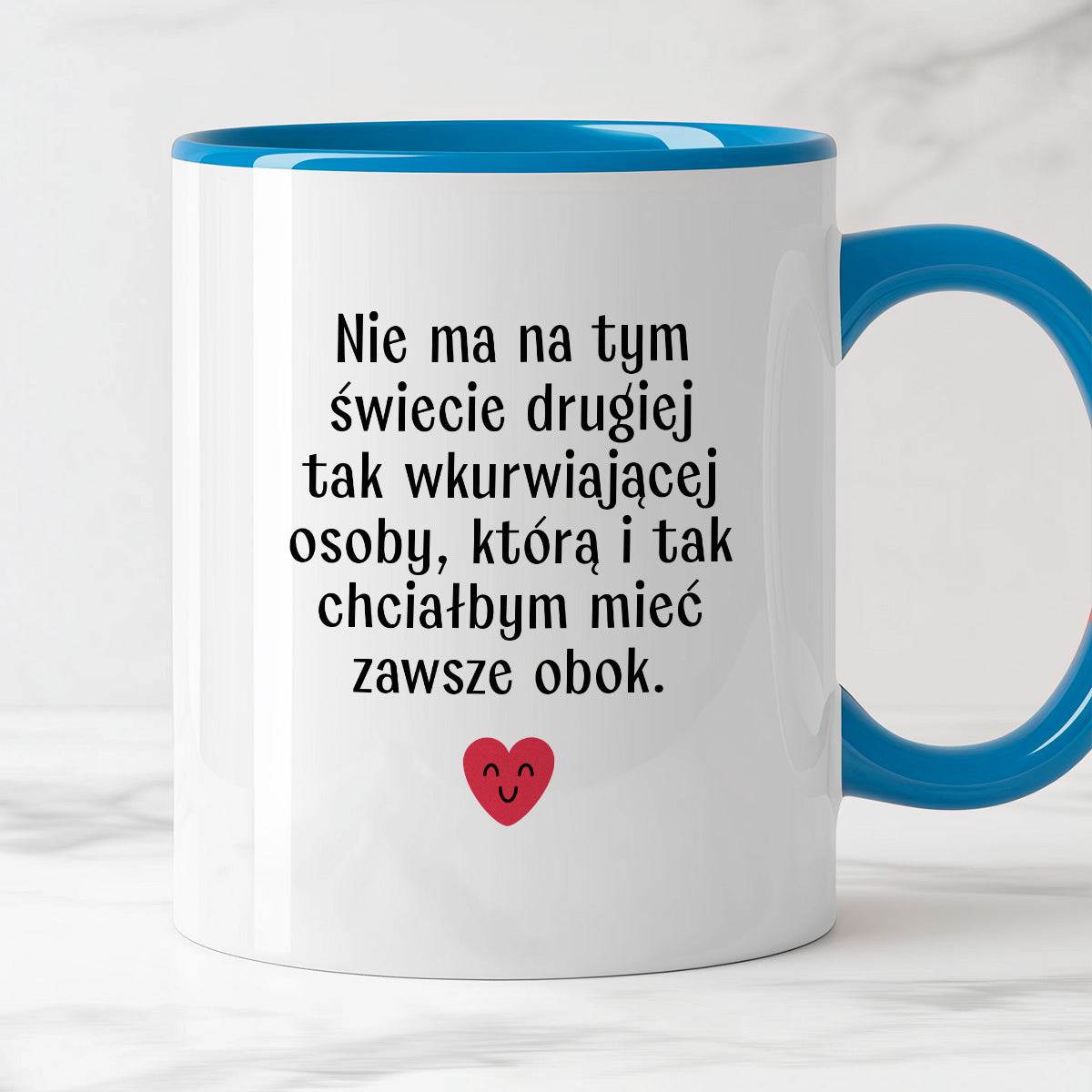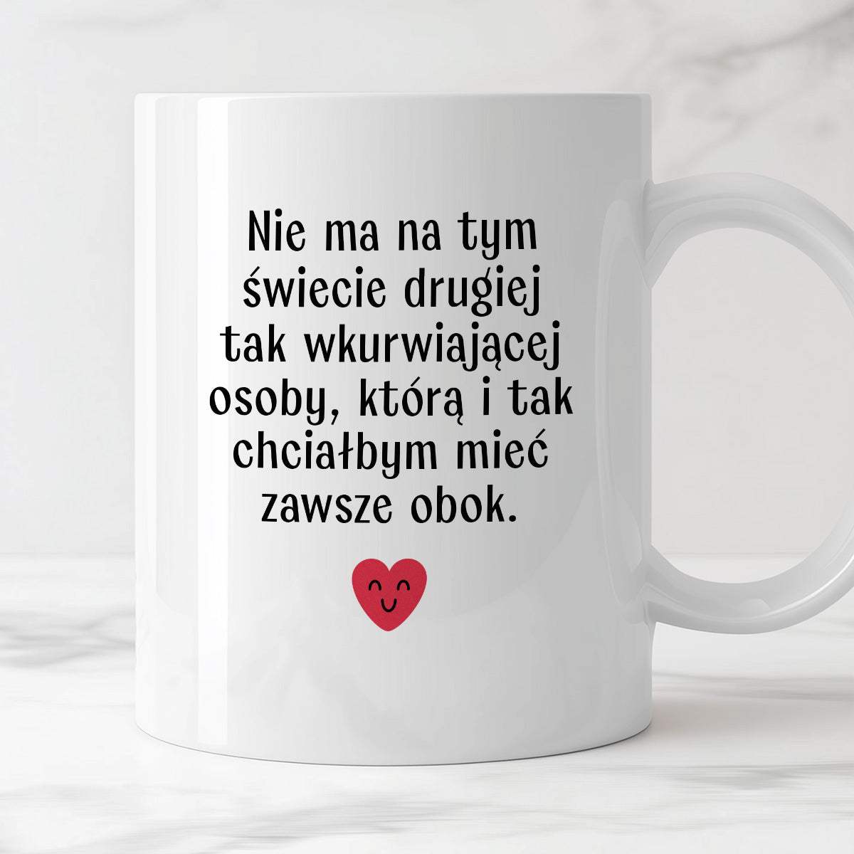„Kocham Cię (nie spierdol tego)” 👹 albo „Będę Cię wkurwiać do końca życia” 😏. Taki kubek mówi wszystko za Ciebie, a kawa smakuje w nim jakoś lepiej.