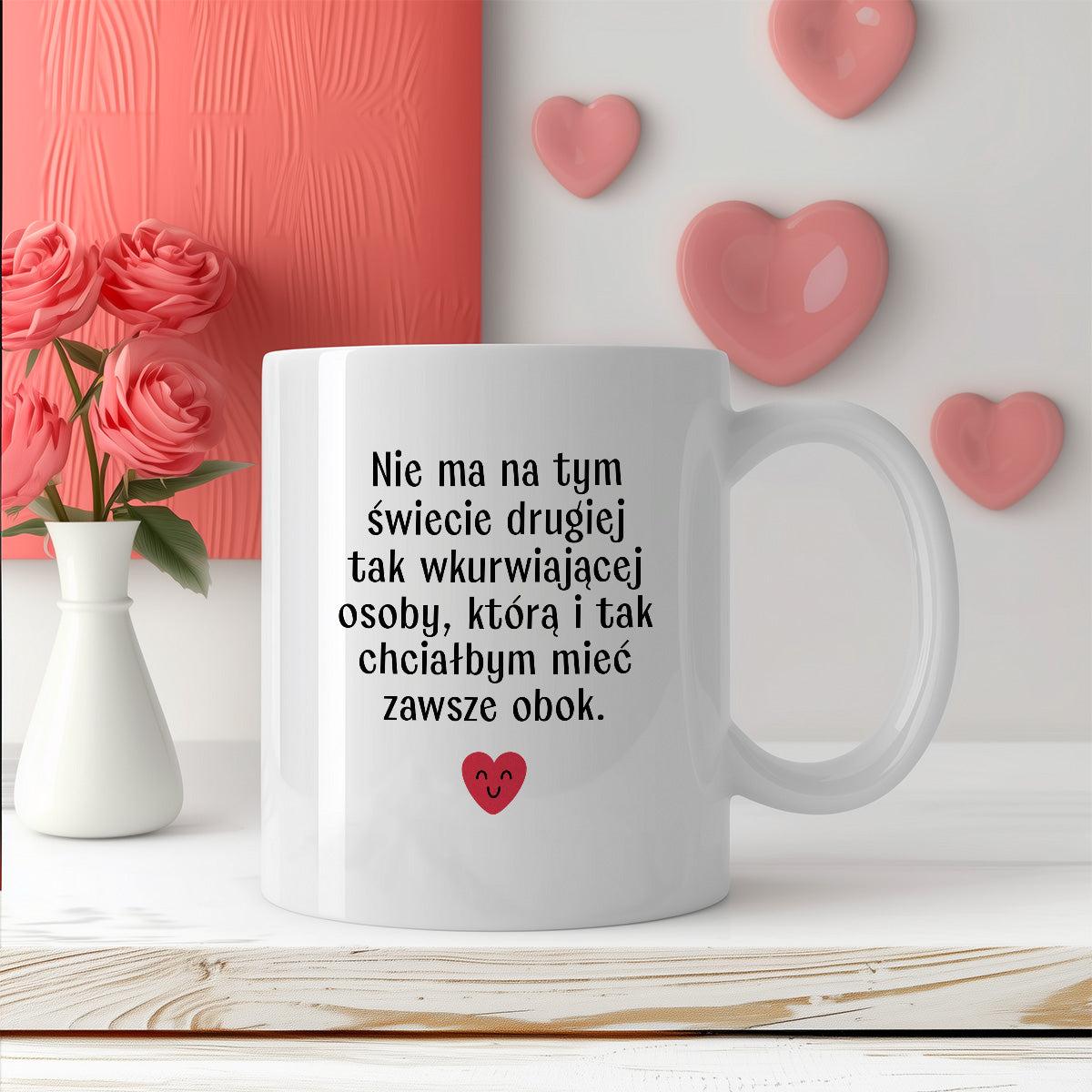 Kubek z nadrukiem "Nie ma na tym świecie drugiej tak wkurwiającej osoby, którą i tak chciałbym mieć obok" - WALENTYNKI - FB