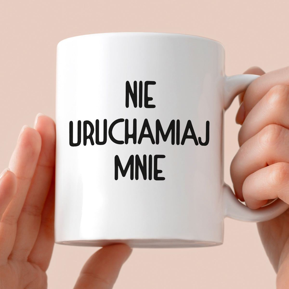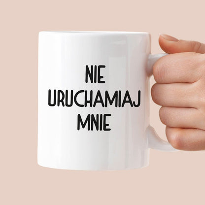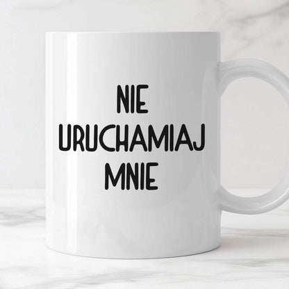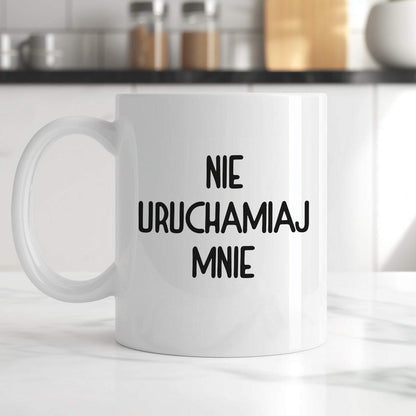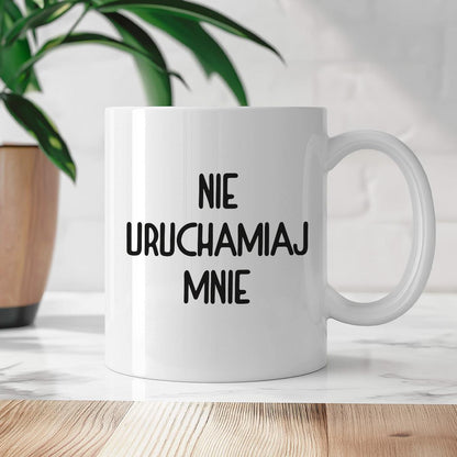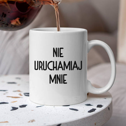 Kubek z nadrukiem "Nie uruchamiaj mnie"