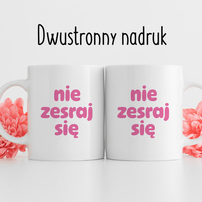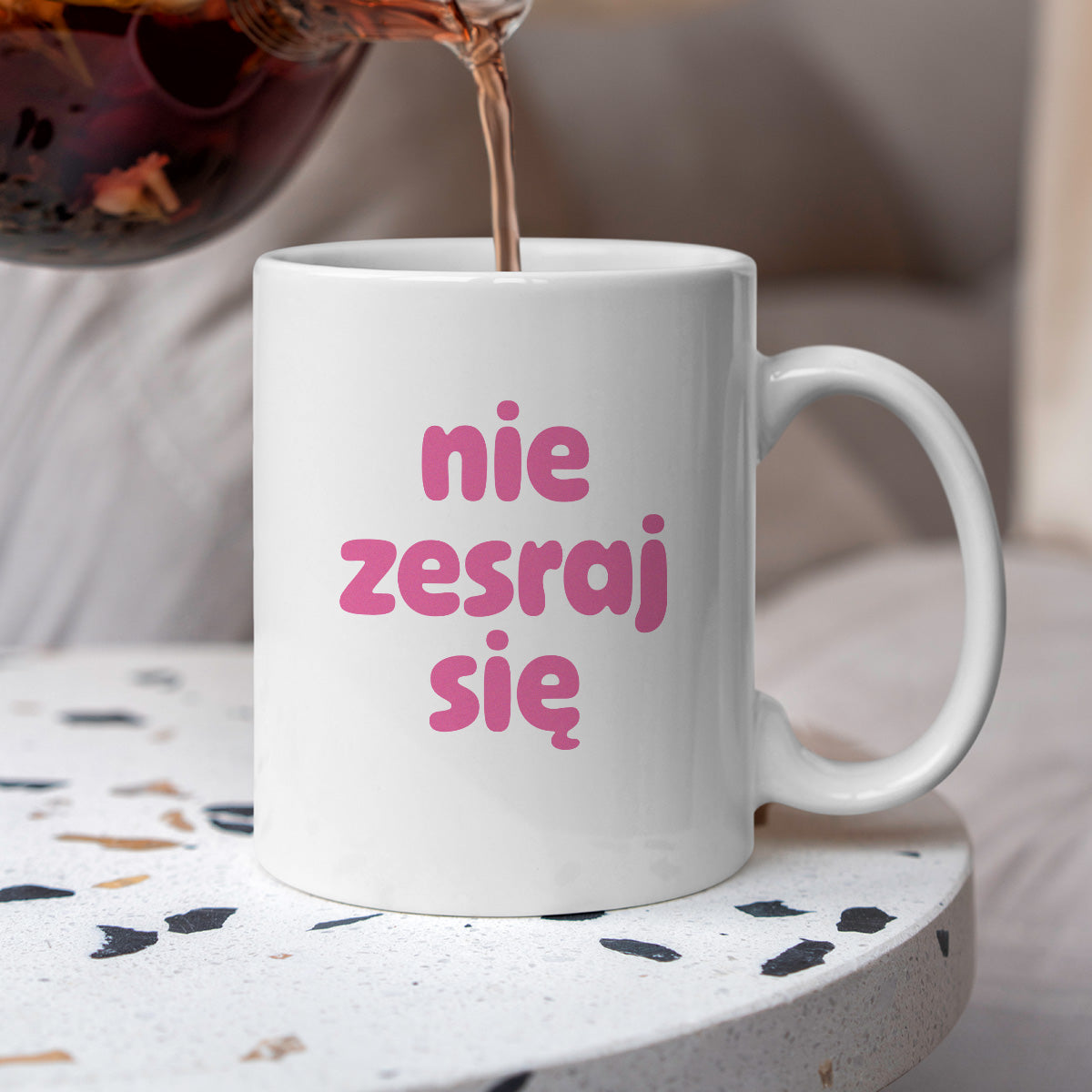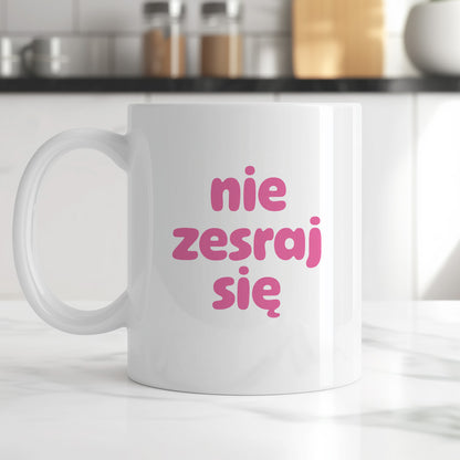 Przedstawiamy kubek, który mówi wszystko, co Ty chciał(a)byś powiedzieć – ale kultura osobista (ledwo) Cię powstrzymuje. "Nie zesraj się" to esencja chłodnego dystansu, którego potrzebujesz, kiedy świat wokół zaczyna dramatyzować jak w telenoweli.