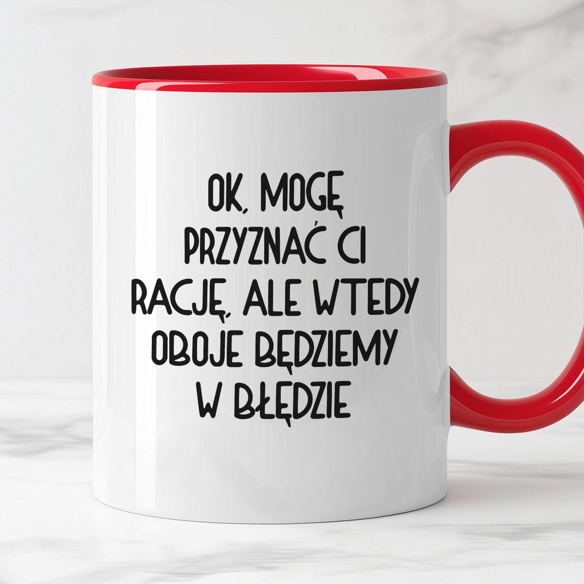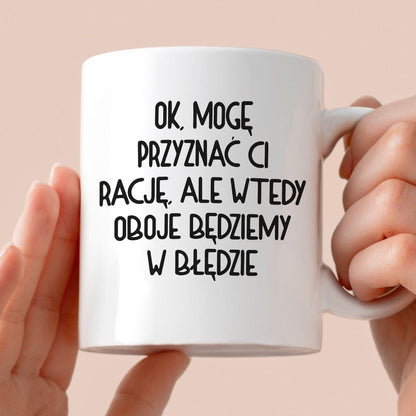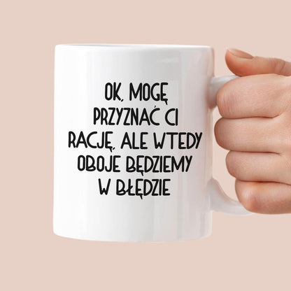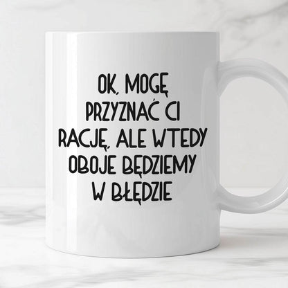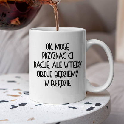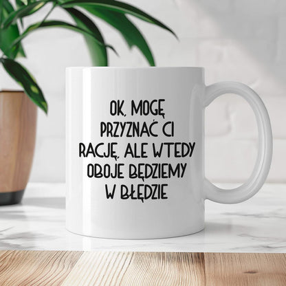 Kubek z nadrukiem "Ok, mogę przyznać Ci rację, ale wtedy oboje będziemy w błędzie"
