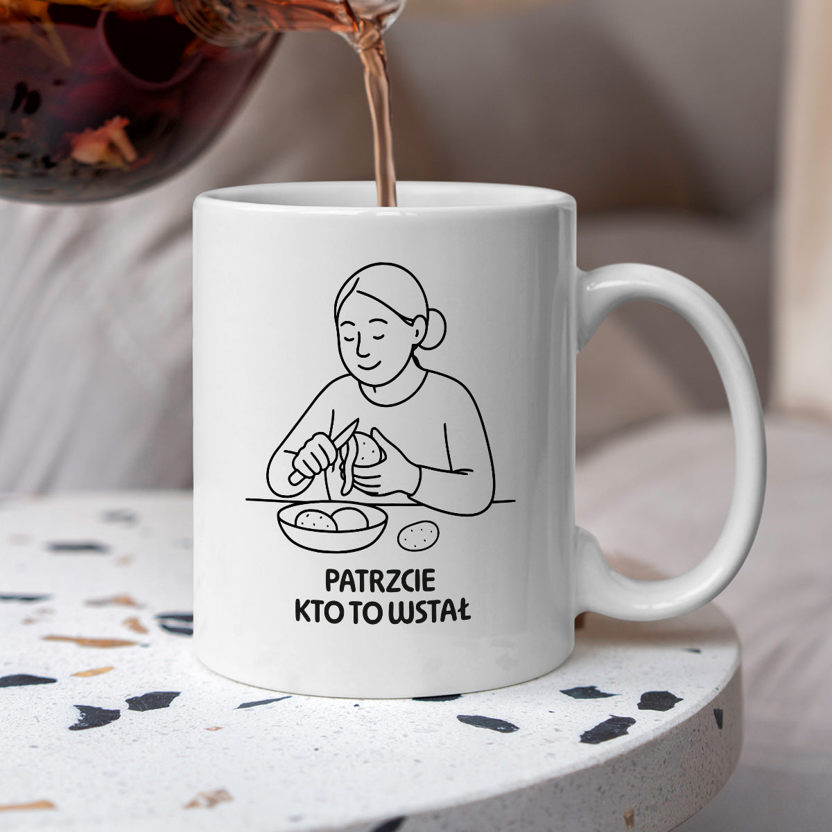 Ten kubek to prezent na Dzień Mamy dla mamy, która nigdy nie owijała w bawełnę – szczególnie o siódmej rano w sobotę. Kultowy tekst, który znają wszyscy śpiochy – teraz w formie śmiesznego, a jednocześnie pełnego sentymentu prezentu.