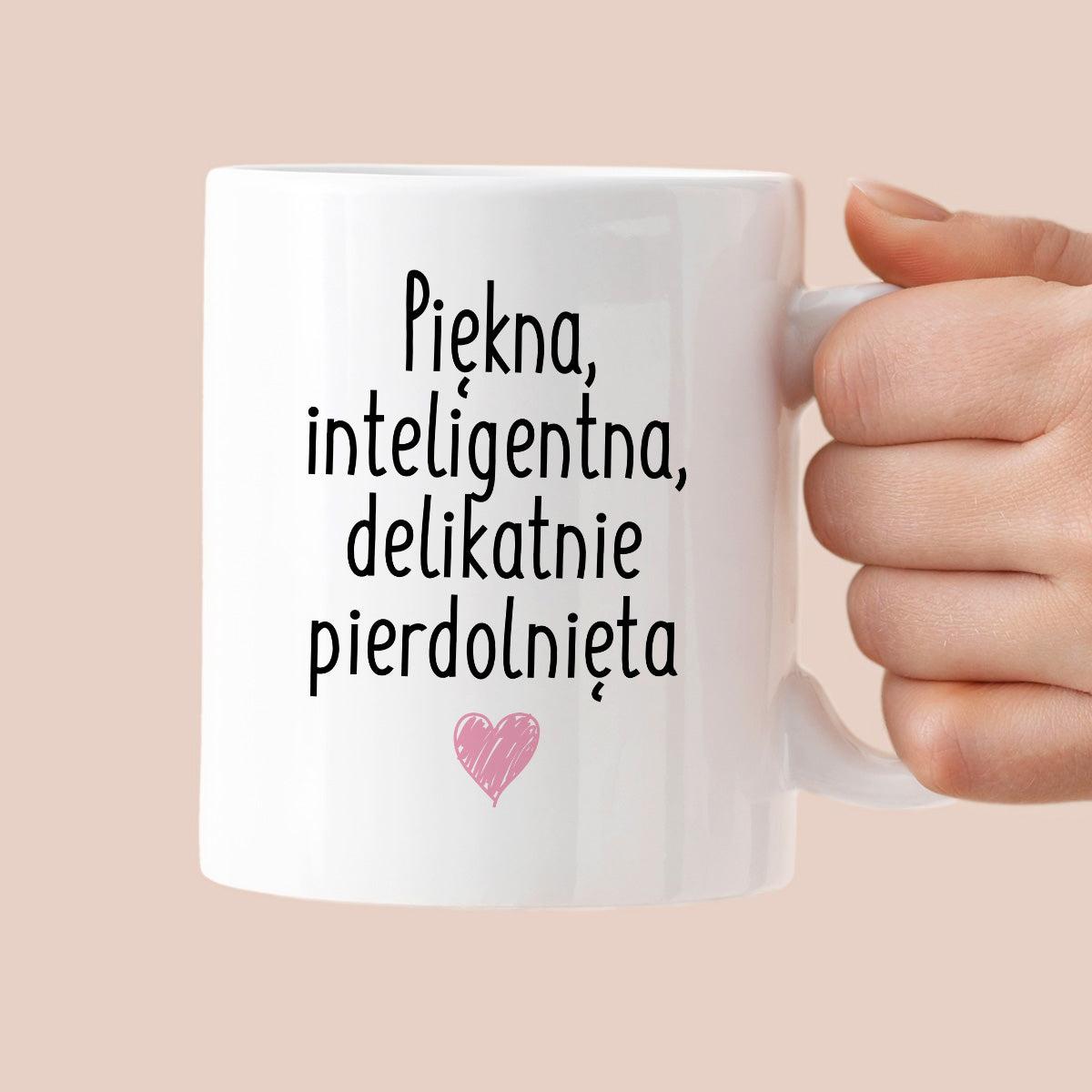 Kubek z nadrukiem "Piękna, inteligenta, delikatnie pierdolnięta" - DZIEŃ KOBIET 🌸