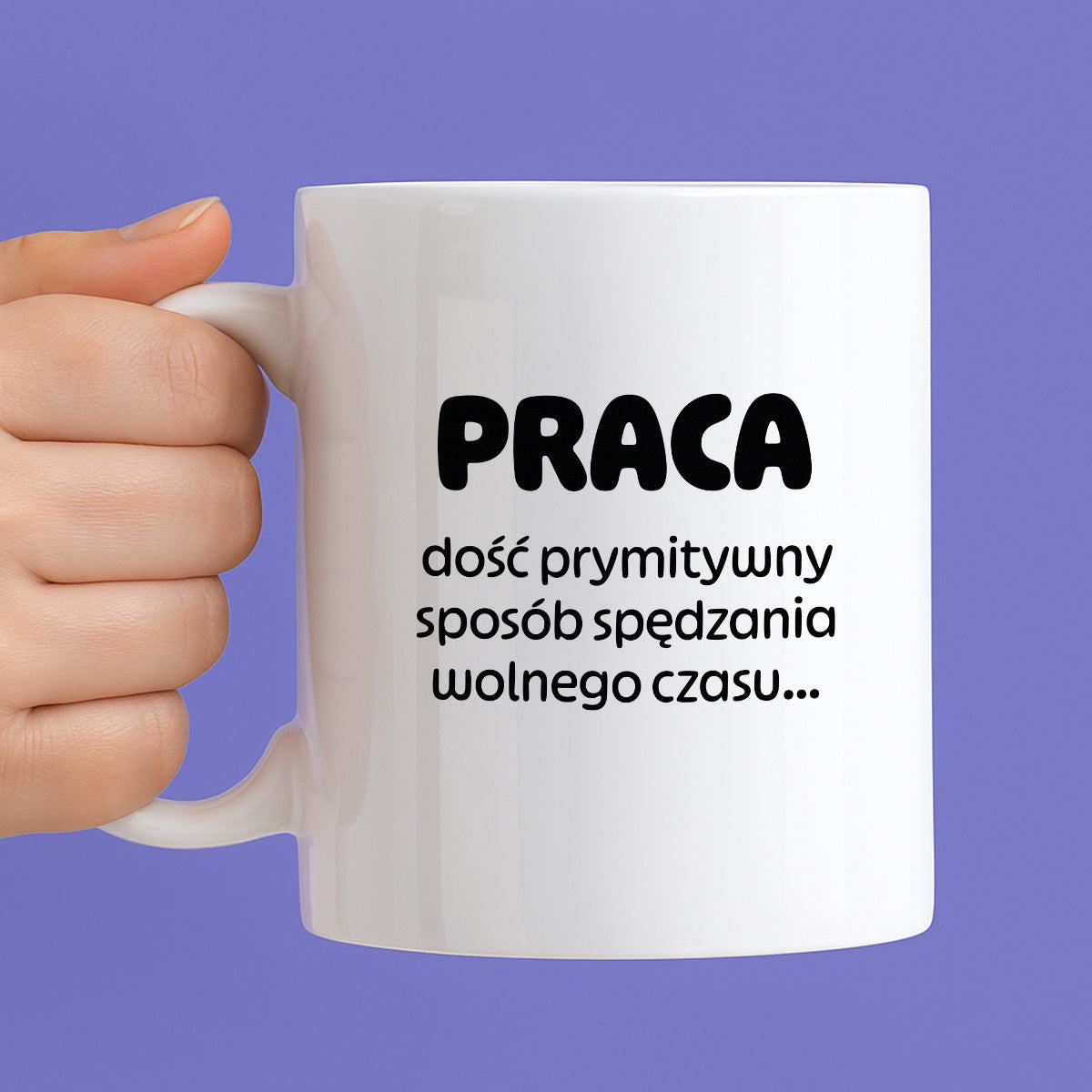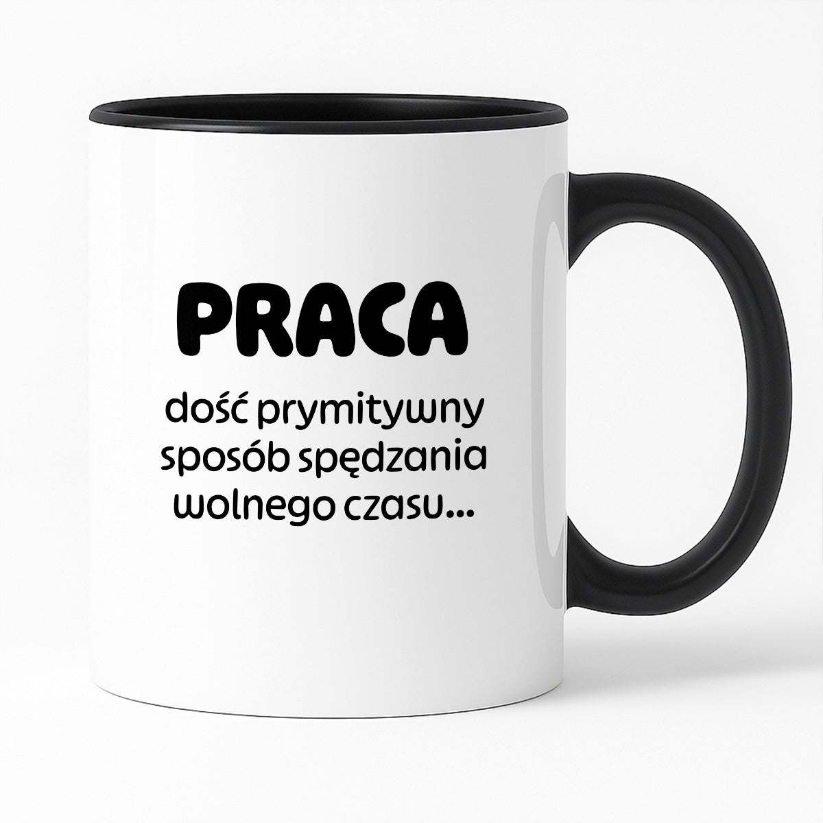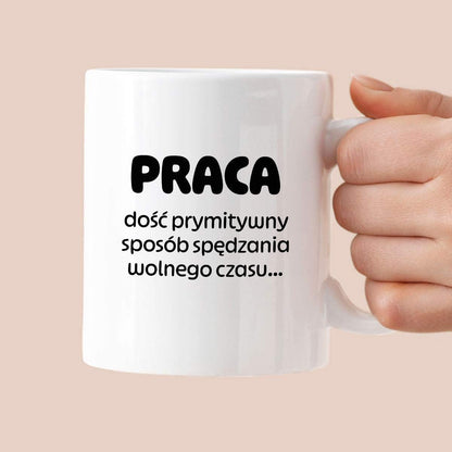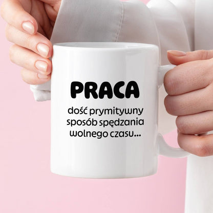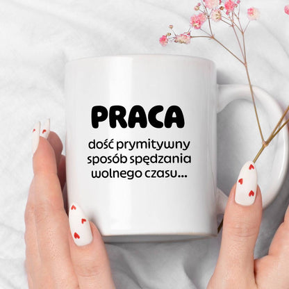 Kubek z nadrukiem "PRACA - dość prymitywny sposób spędzania wolnego czasu..."