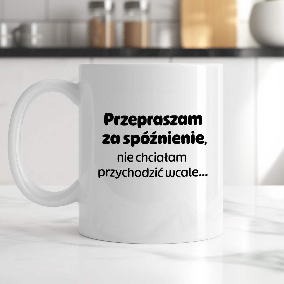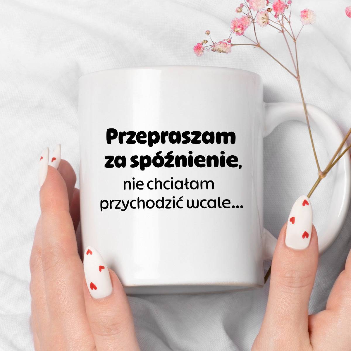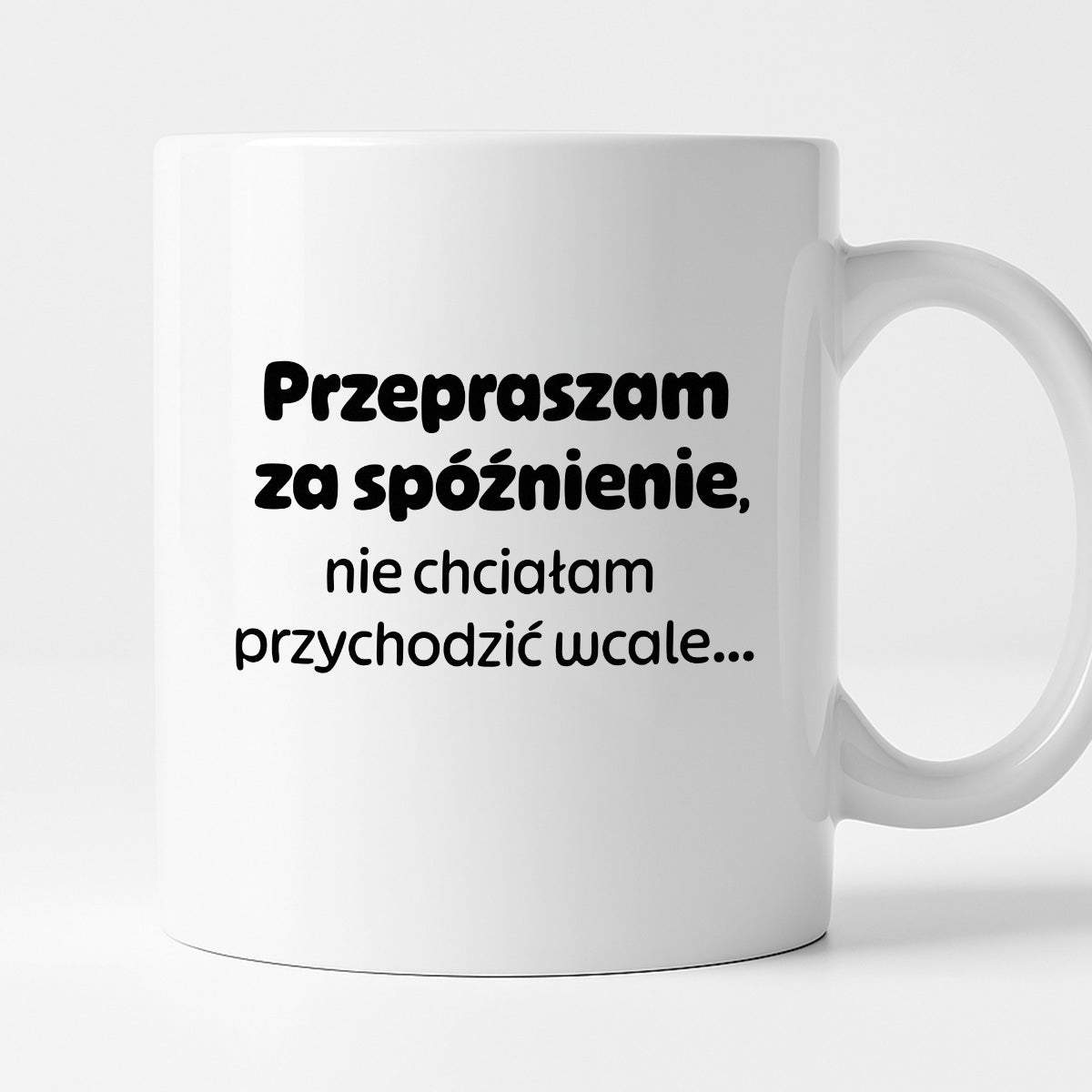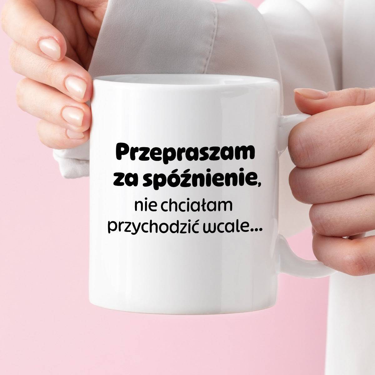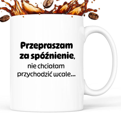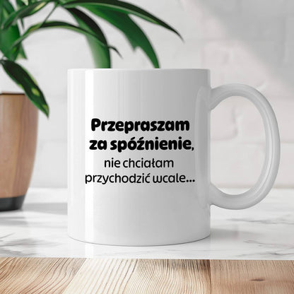 Kubek z nadrukiem - "Przepraszam za spóźnienie, nie chciałam przychodzić wcale"