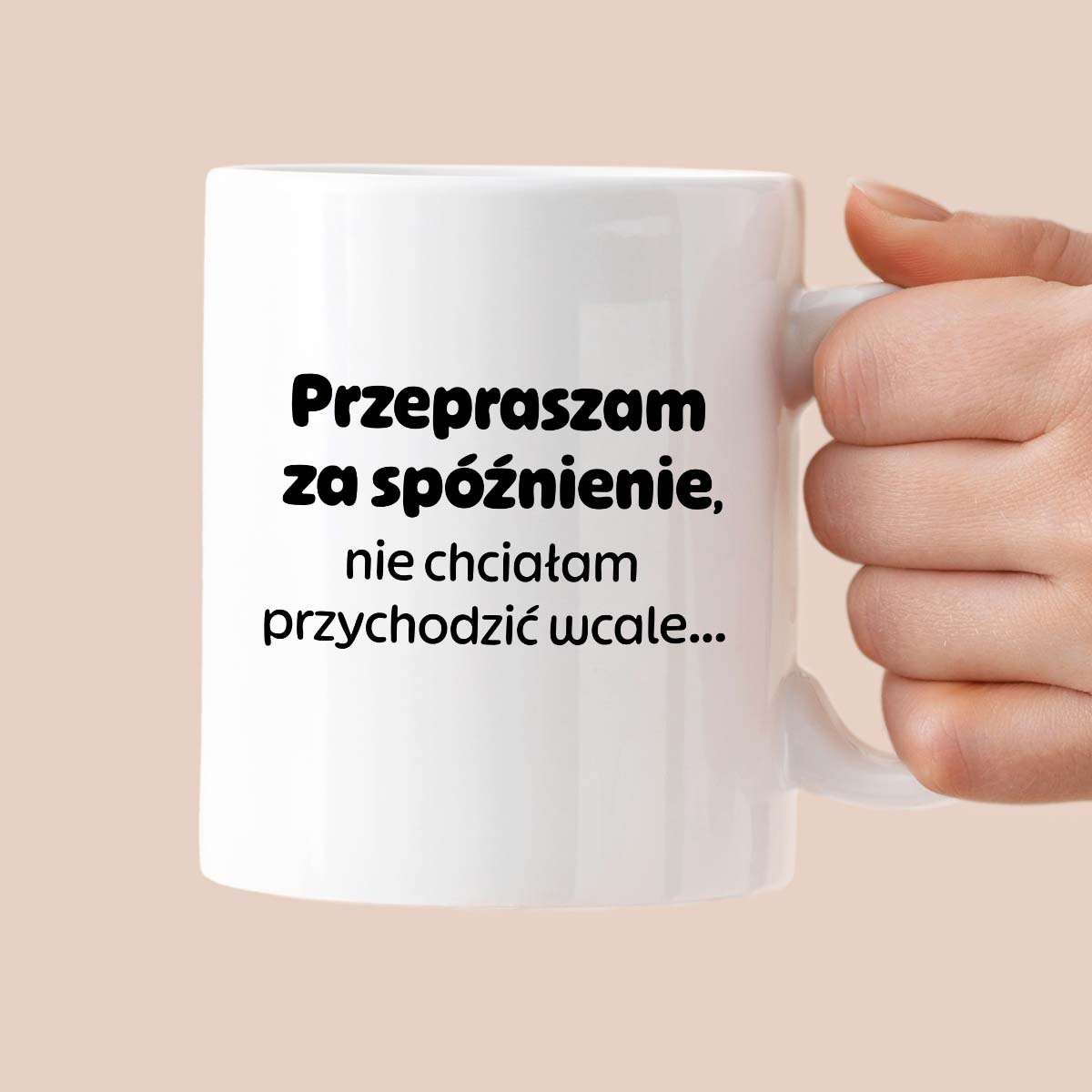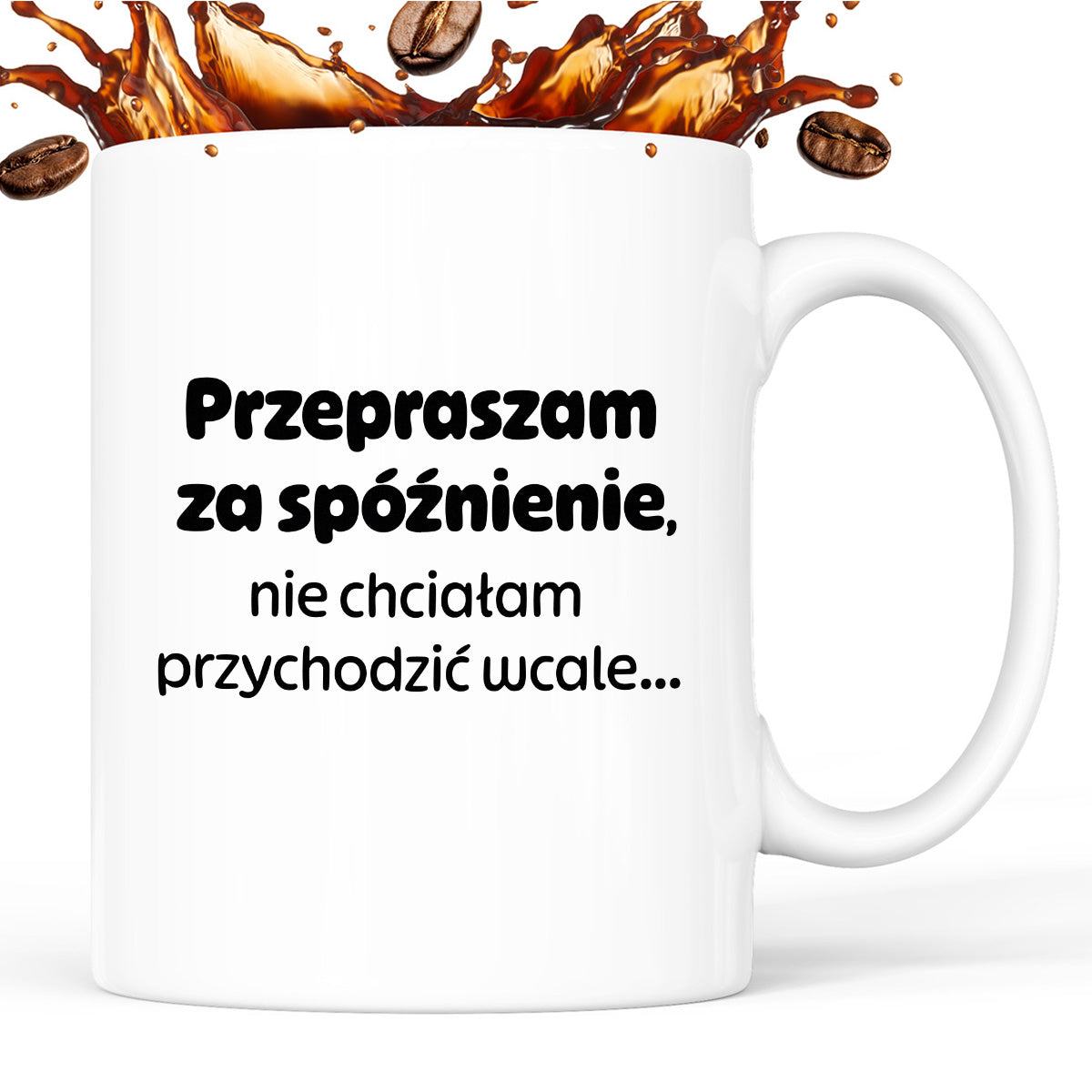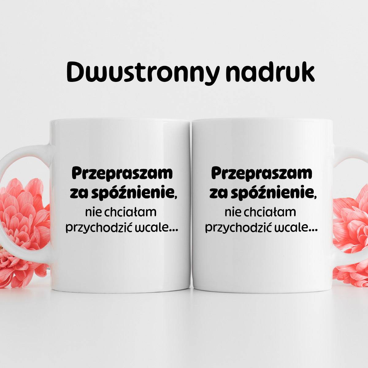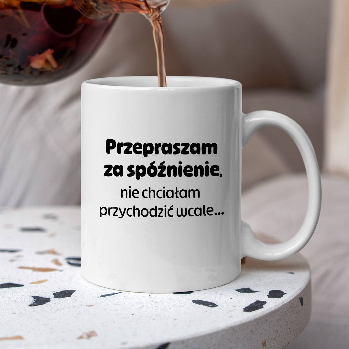 Kubek z nadrukiem - "Przepraszam za spóźnienie, nie chciałam przychodzić wcale"