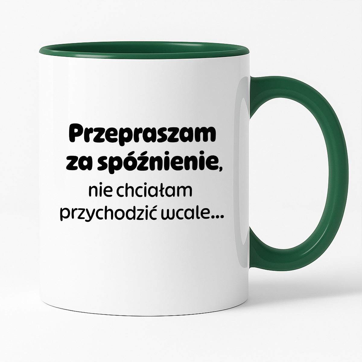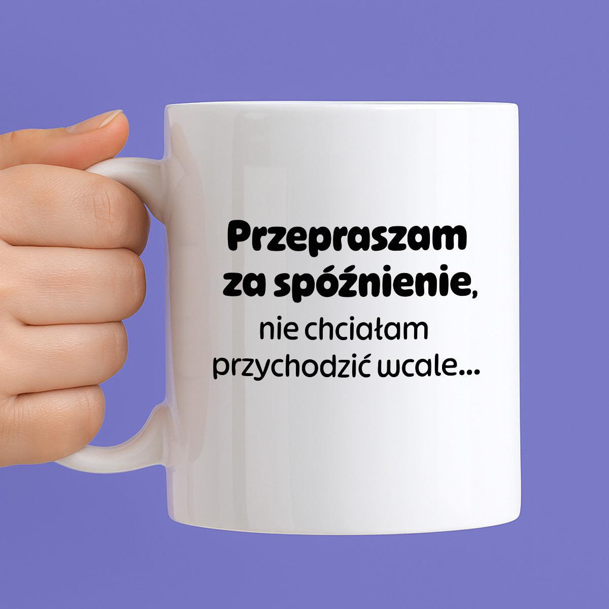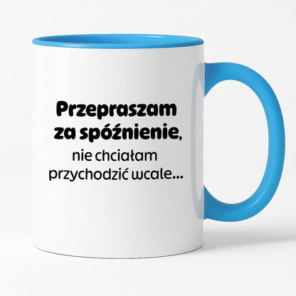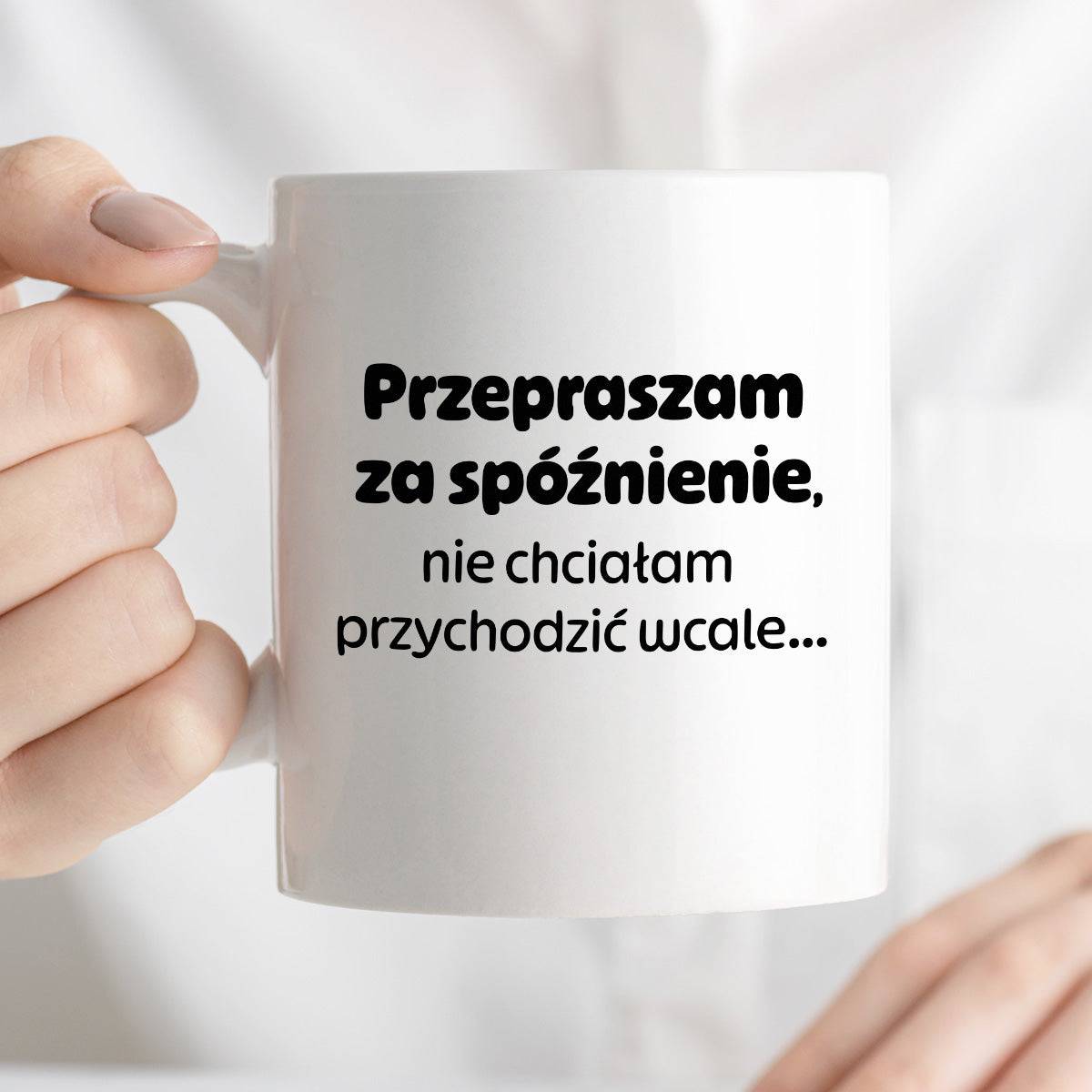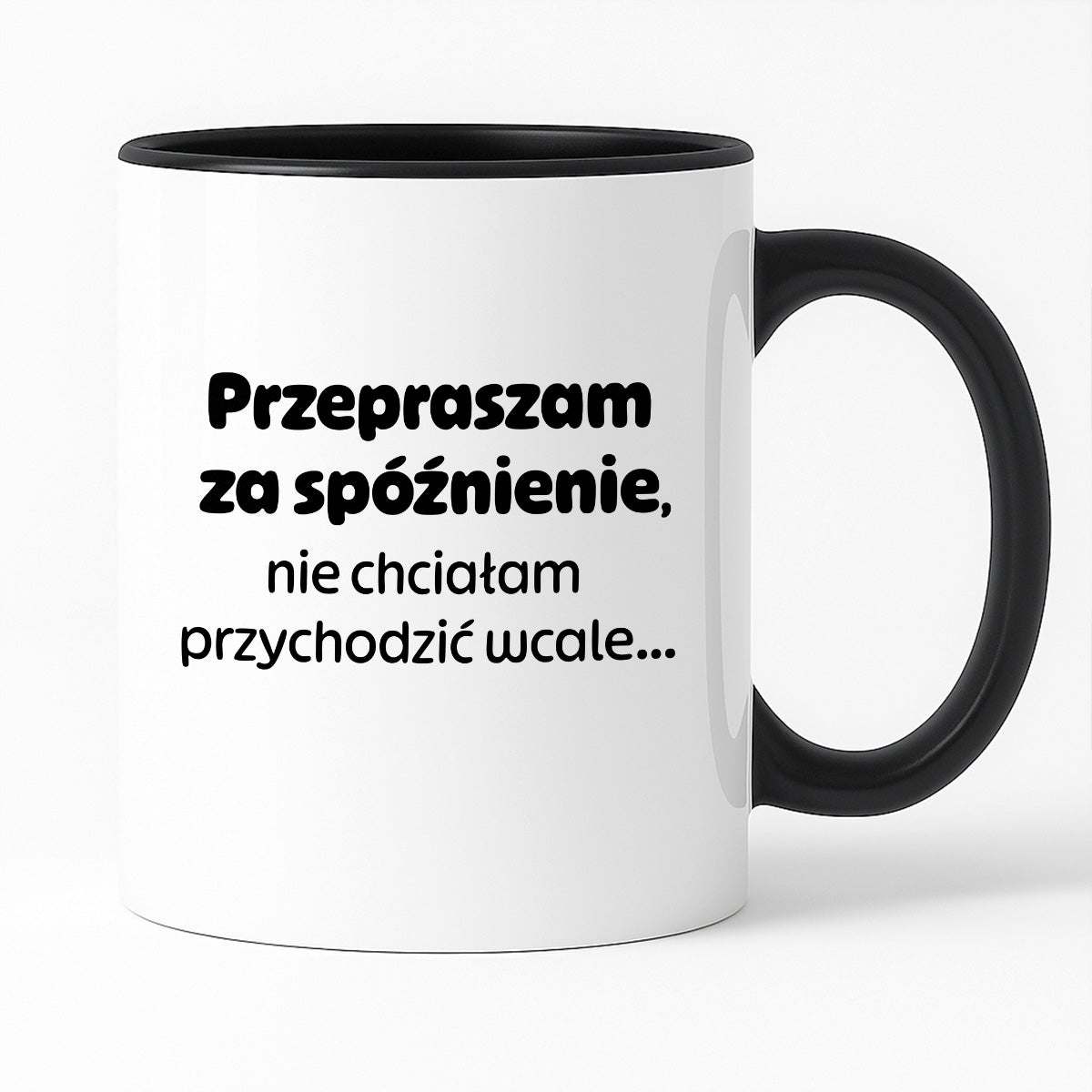 Kubek z nadrukiem - "Przepraszam za spóźnienie, nie chciałam przychodzić wcale"