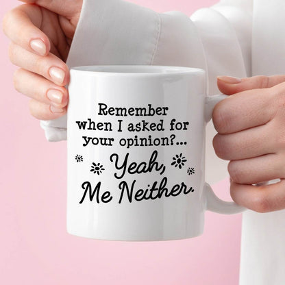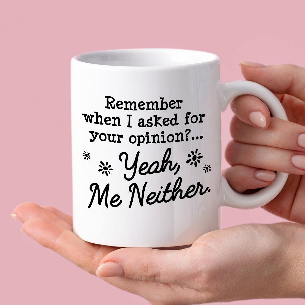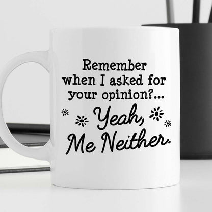 Kubek z nadrukiem "Remember when I asked for your opinion?… Yeah, Me Neither."