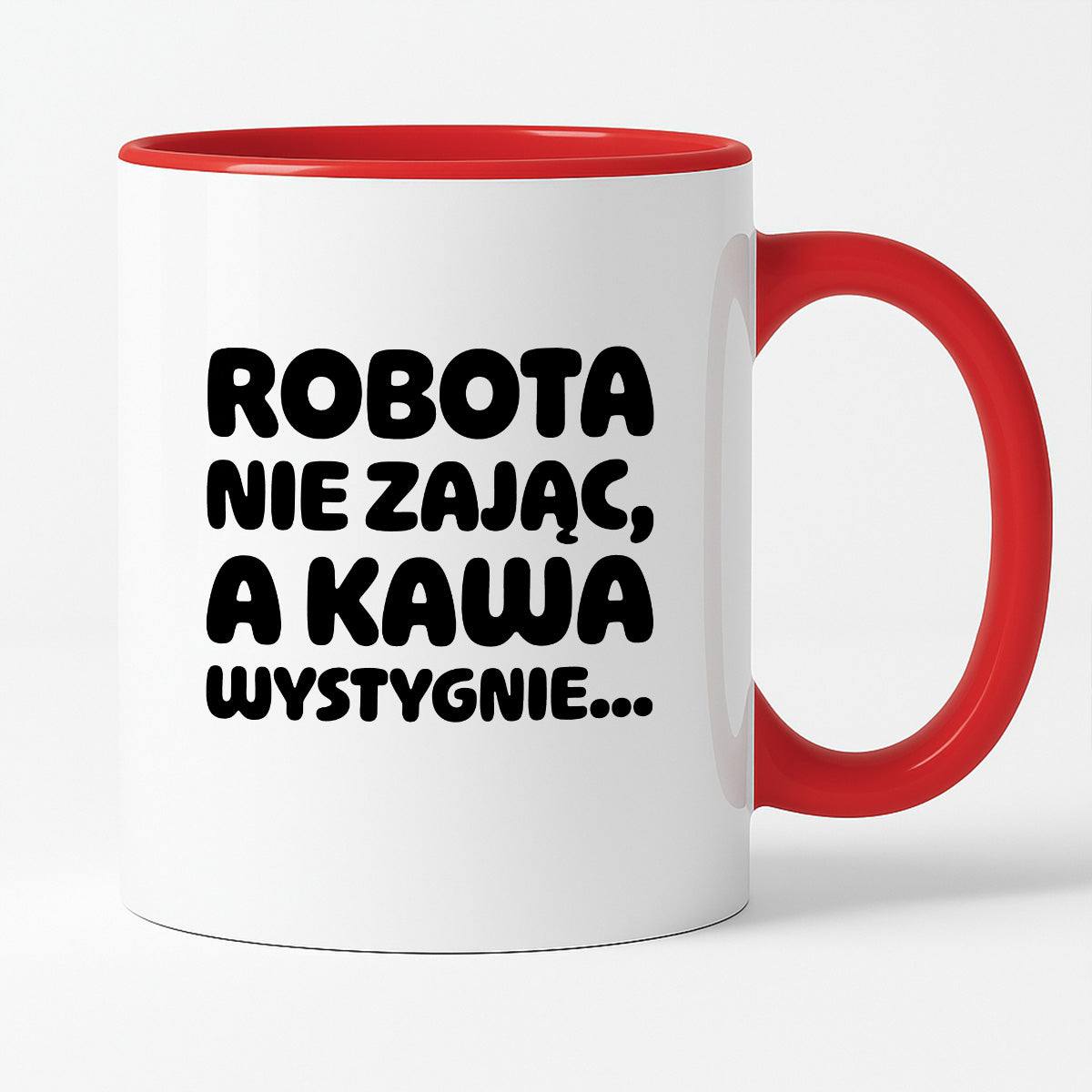 Kubek z nadrukiem "Robota nie zając, a kawa wystygnie"
