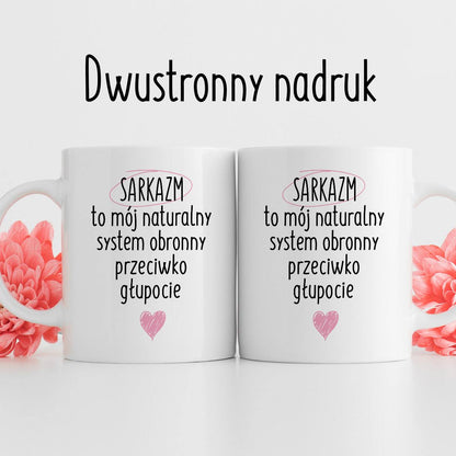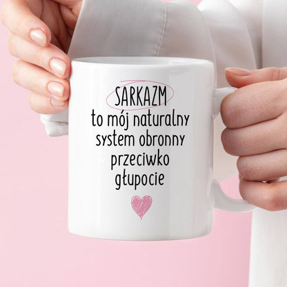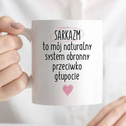 Kubek z nadrukiem "SARKAZM to mój naturalny system obronny przeciwko głupocie" FB