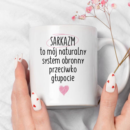 Kubek z nadrukiem "SARKAZM to mój naturalny system obronny przeciwko głupocie" - DZIEŃ KOBIET 🌸