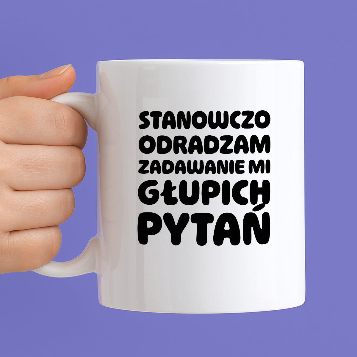 Kubek z nadrukiem "Stanowczo odradzam zadawanie mi głupich pytań"