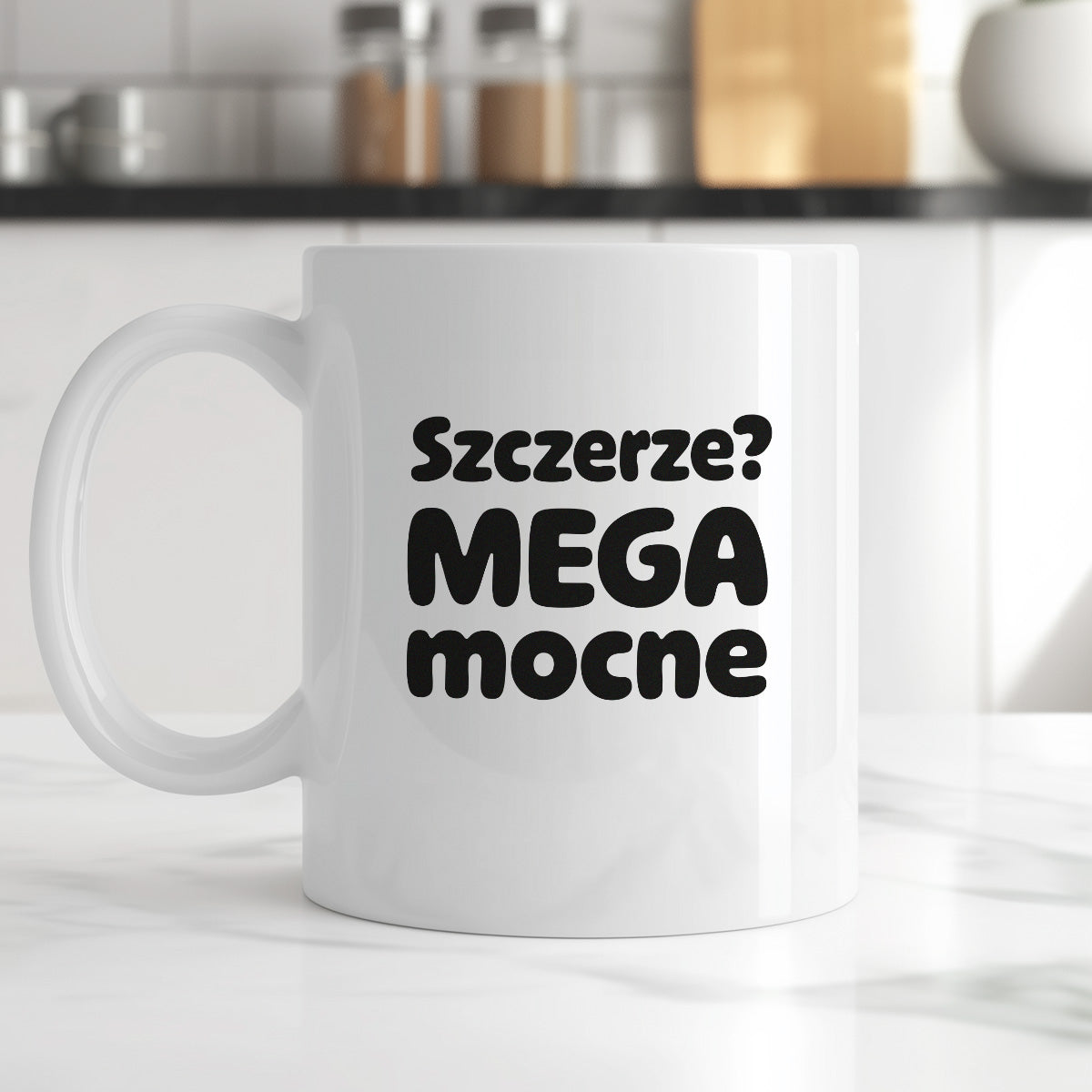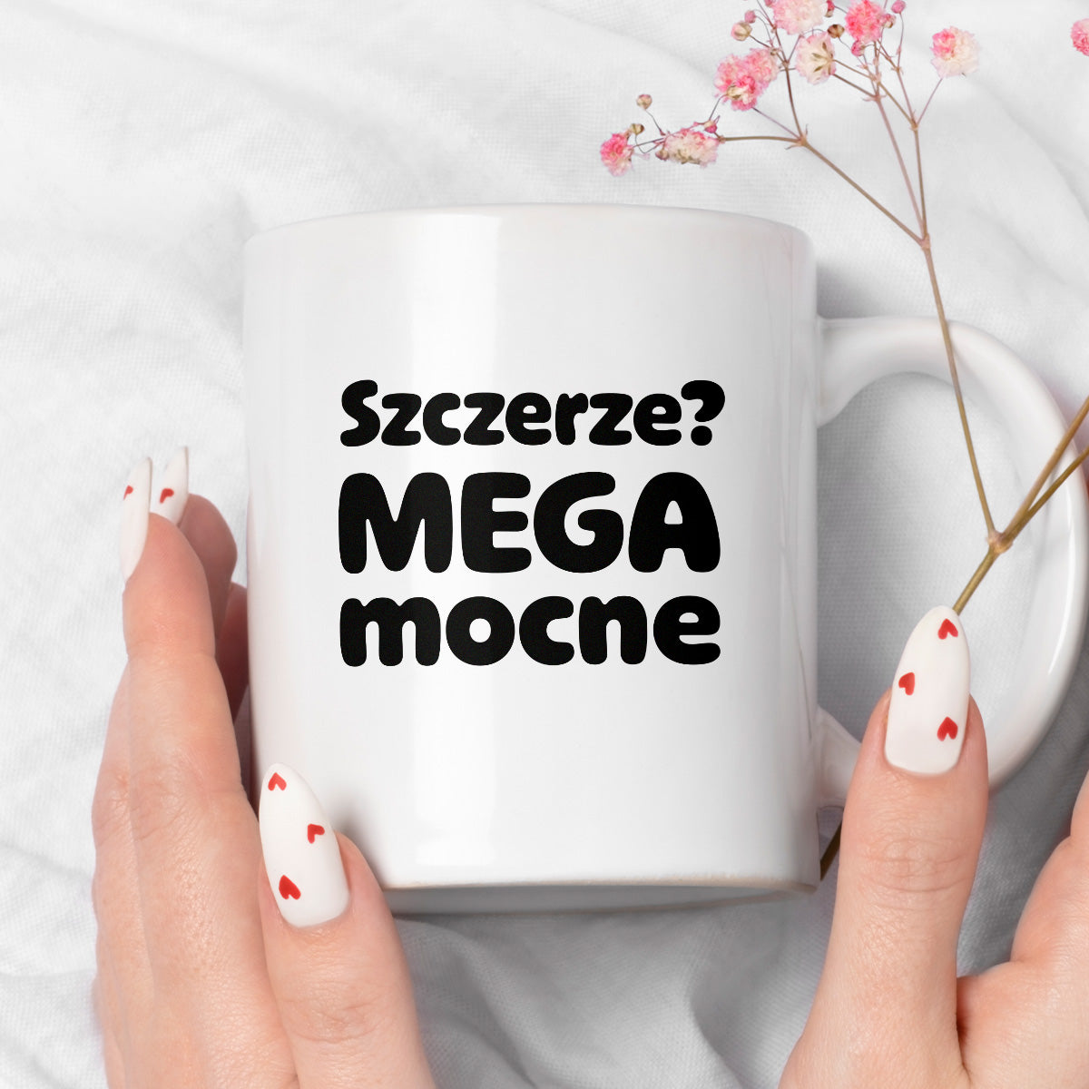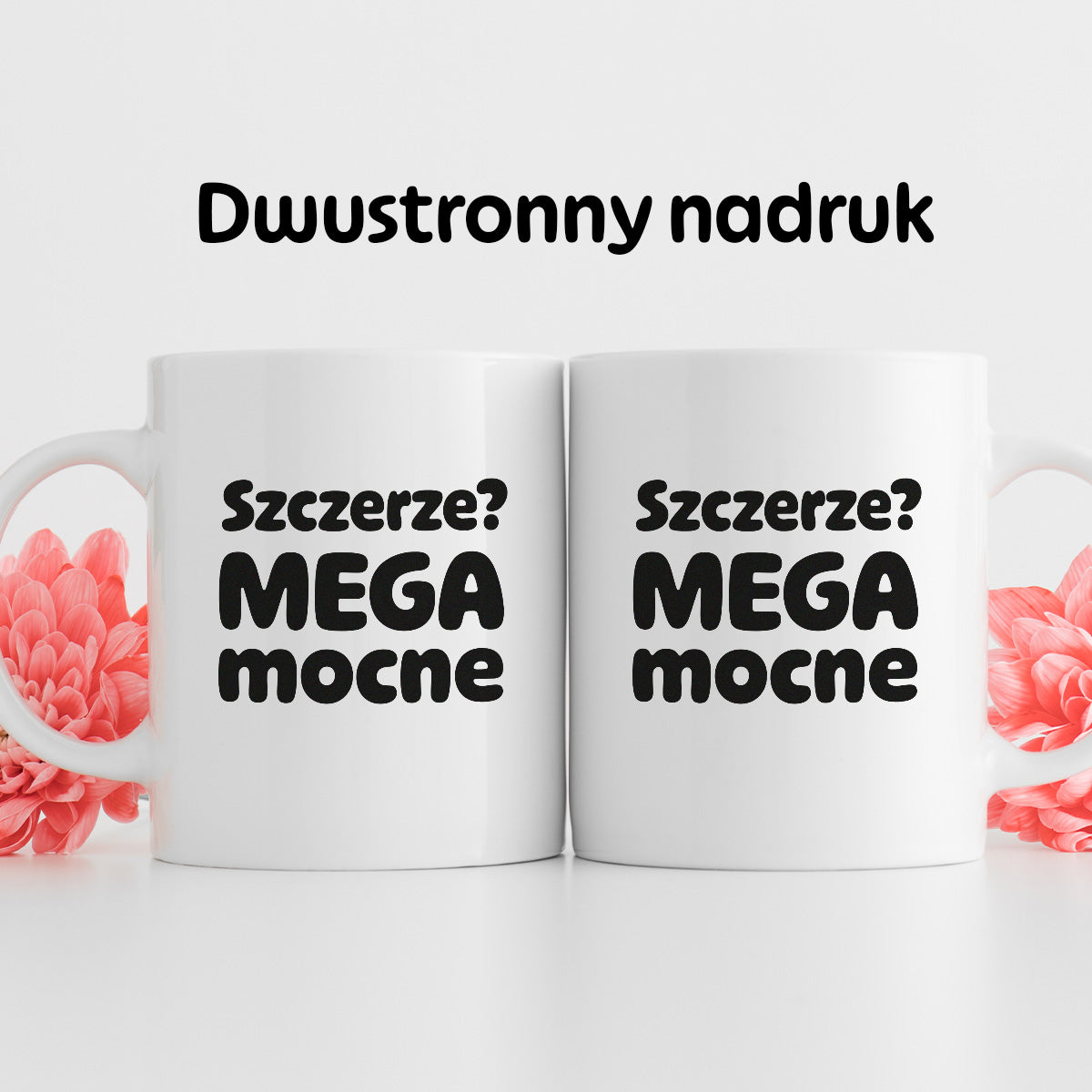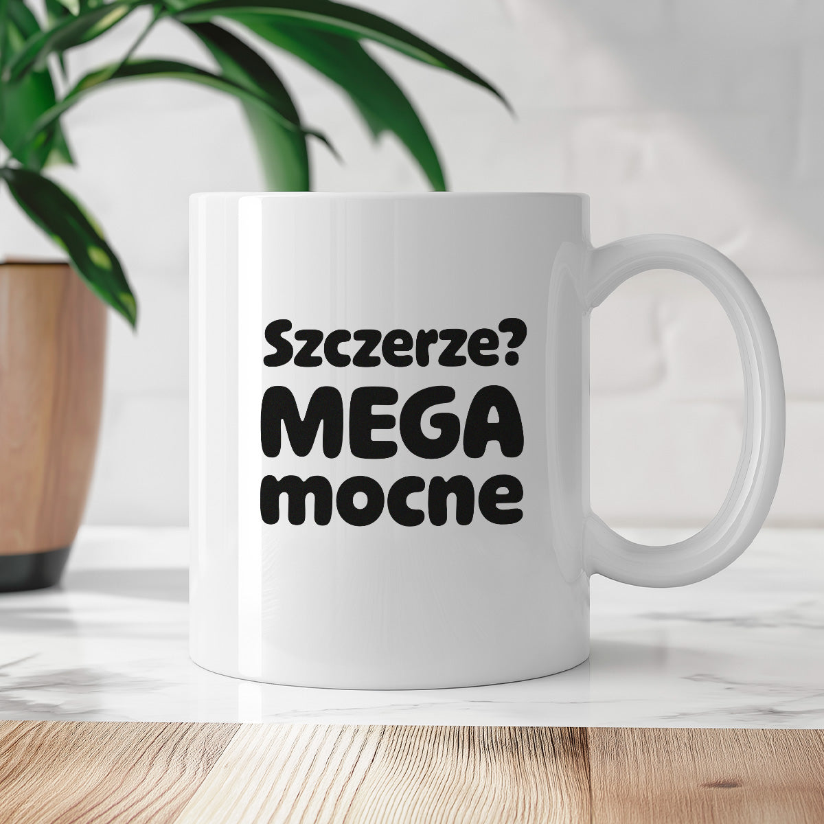 Kubek z nadrukiem - "Szczerze? Mega mocne"