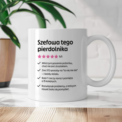 Kubek z nadrukiem "Szefowa tego pierdolnika"