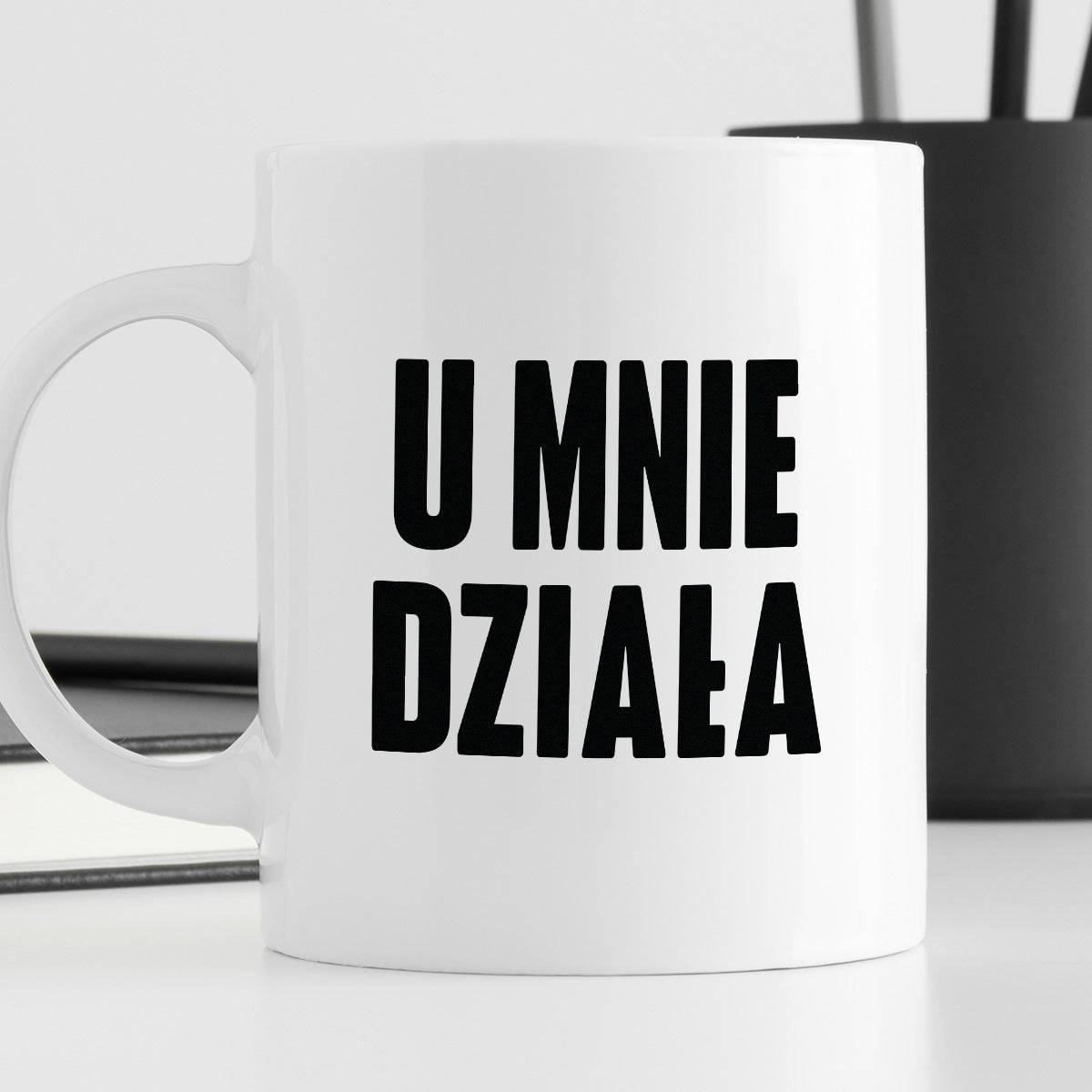 Kubek z nadrukiem "U mnie działa"