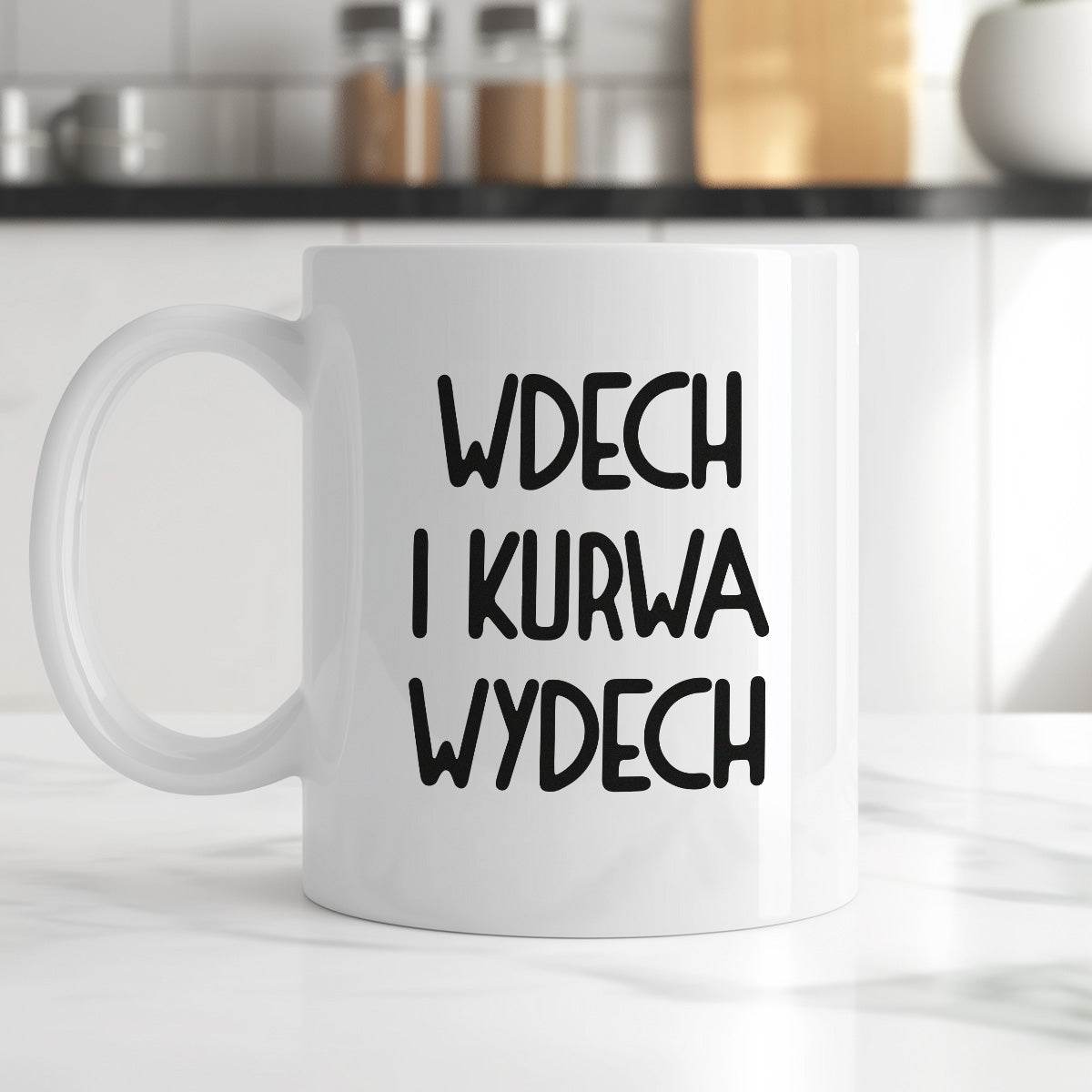 Kubek z nadrukiem "Wdech i kurwa wydech"