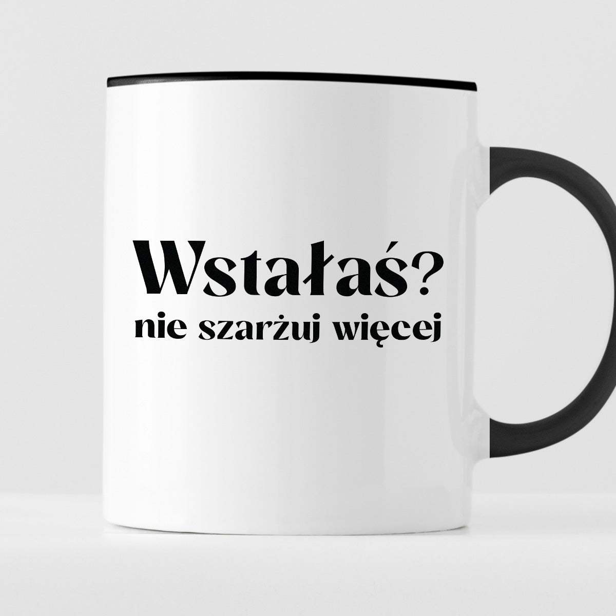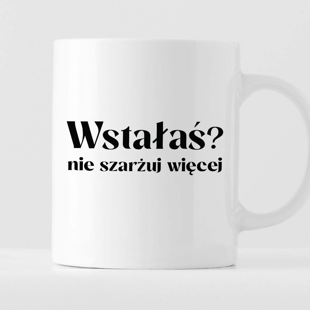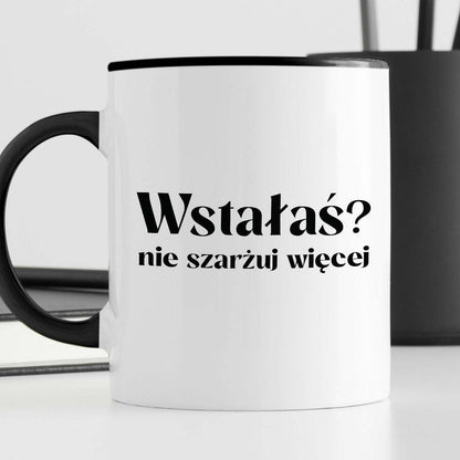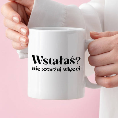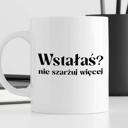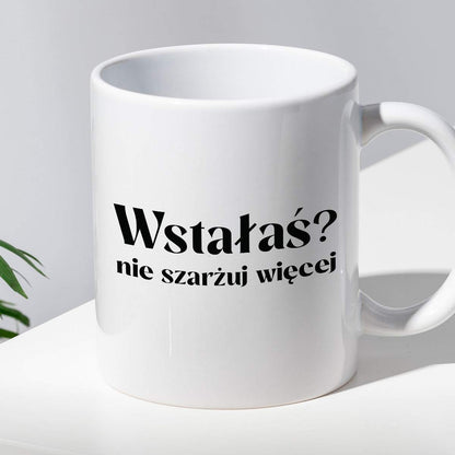 Kubek z nadrukiem "Wstałaś? Nie szarżuj więcej"