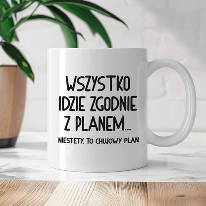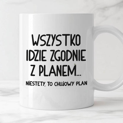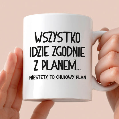 Kubek z nadrukiem "Wszystko idzie zgodnie z planem... Niestety to chujowy plan"