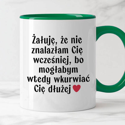 „Kocham Cię (nie spierdol tego)” 👹 albo „Będę Cię wkurwiać do końca życia” 😏. Taki kubek mówi wszystko za Ciebie, a kawa smakuje w nim jakoś lepiej.