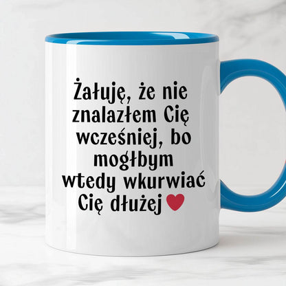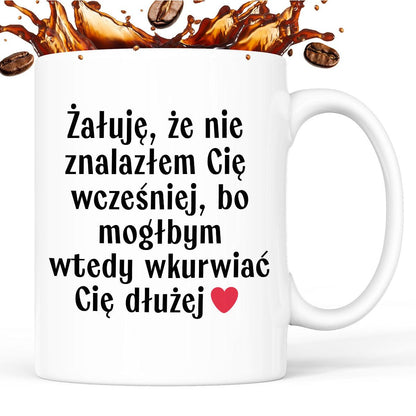 „Kocham Cię (nie spierdol tego)” 👹 albo „Będę Cię wkurwiać do końca życia” 😏. Taki kubek mówi wszystko za Ciebie, a kawa smakuje w nim jakoś lepiej.