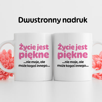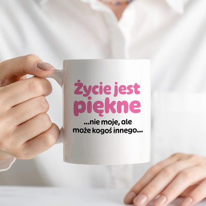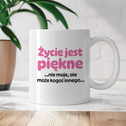 Kubek z nadrukiem - "Życie jest piękne ...nie moje, ale może kogoś innego..." 330 ml
