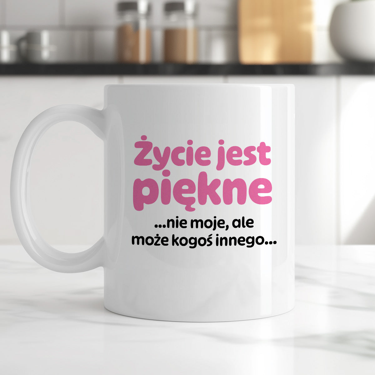Kubek z nadrukiem - "Życie jest piękne ...nie moje, ale może kogoś innego..."