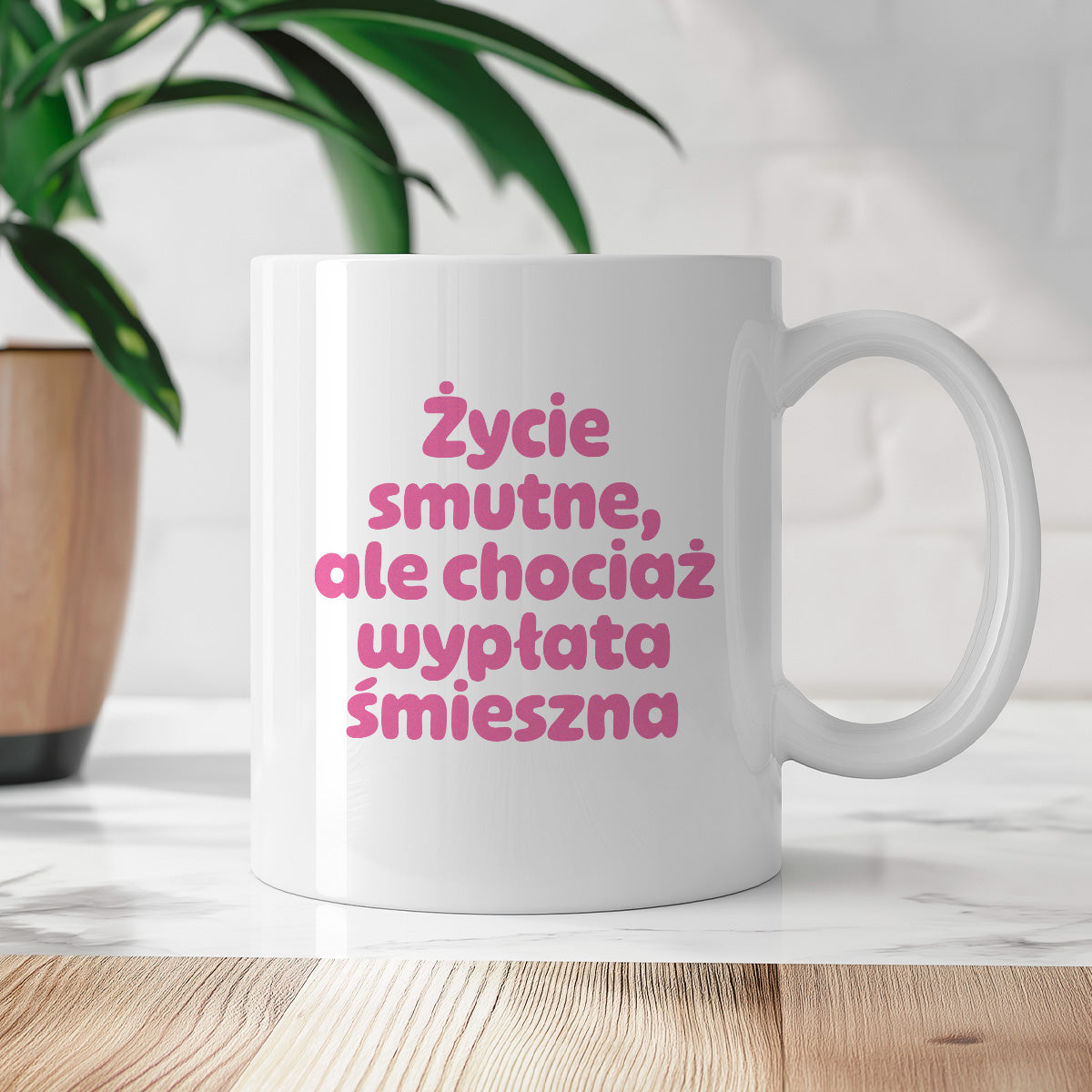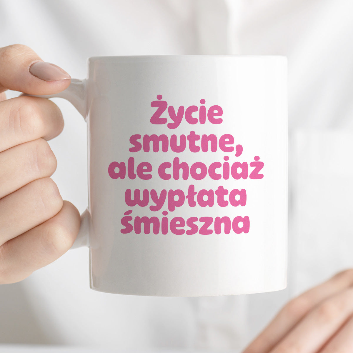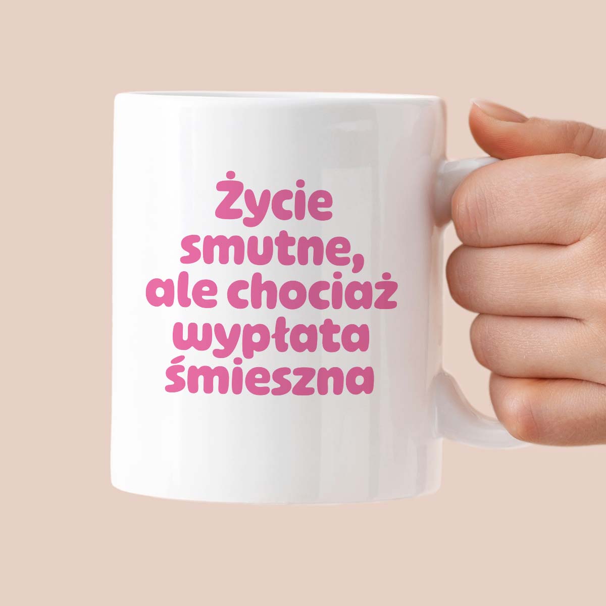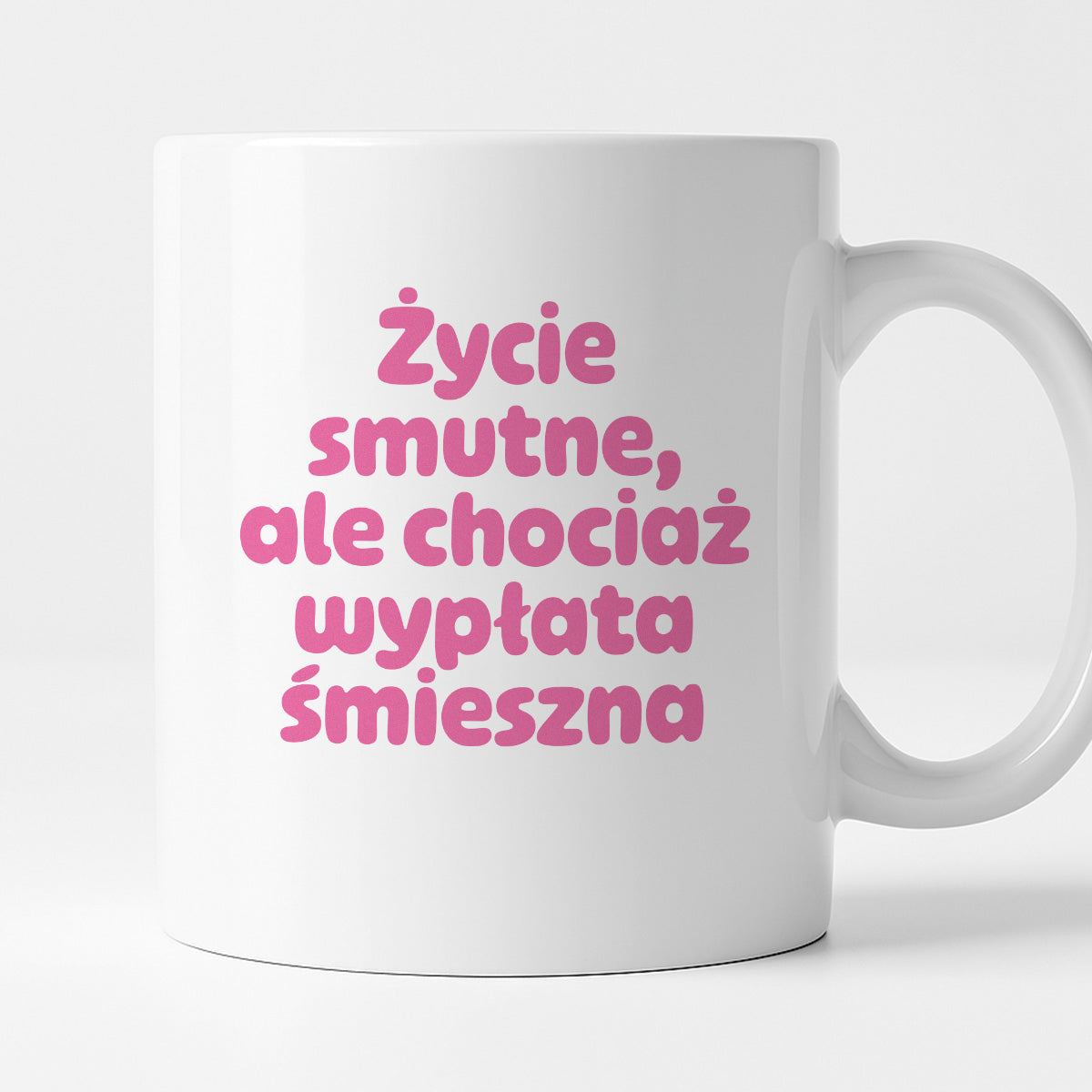 Kubek dla wszystkich, którzy rano wstają tylko dlatego, że trzeba... a potem patrzą na konto i śmieją się przez łzy. No cóż — życie bywa ciężkie, ale przynajmniej konto bankowe potrafi rozbawić.