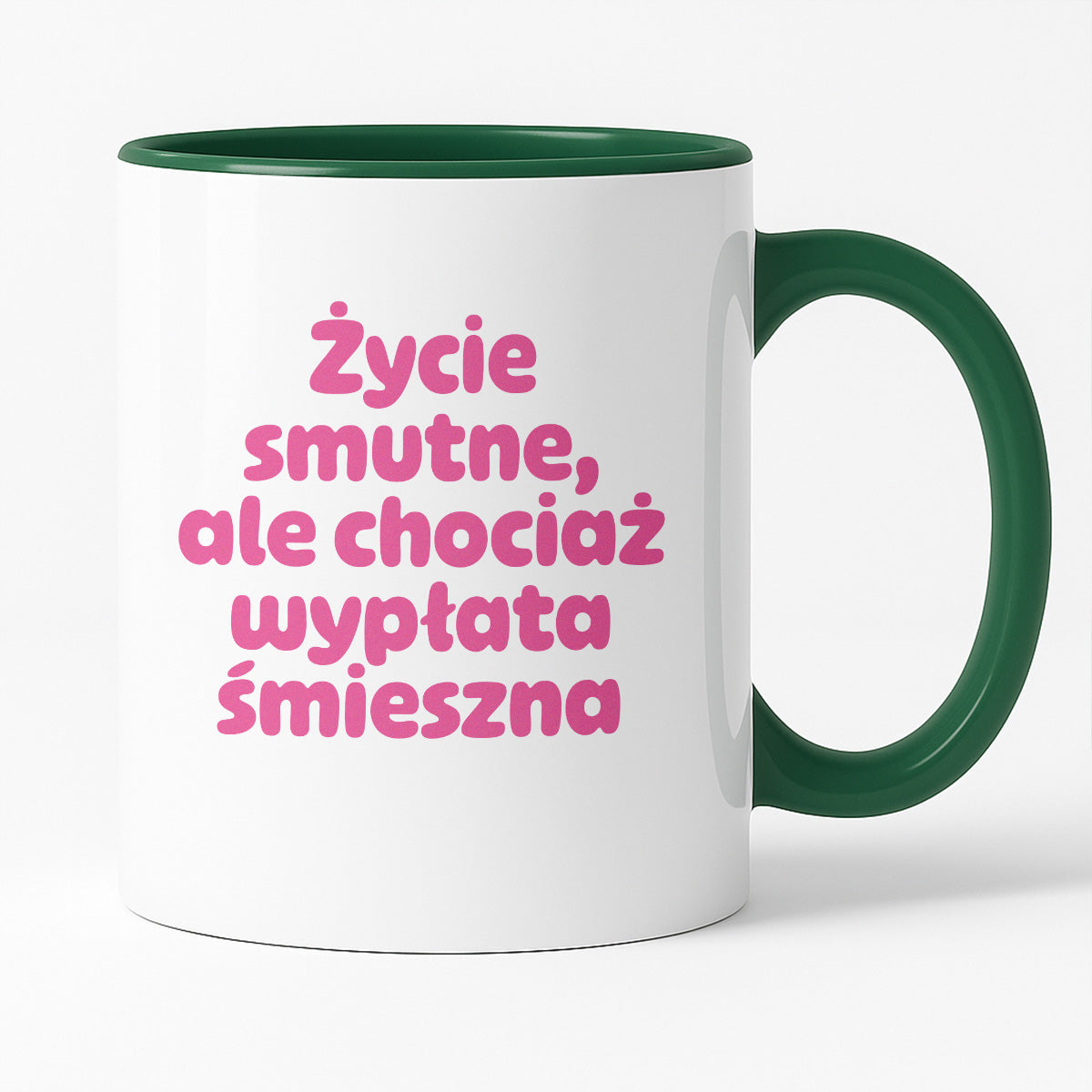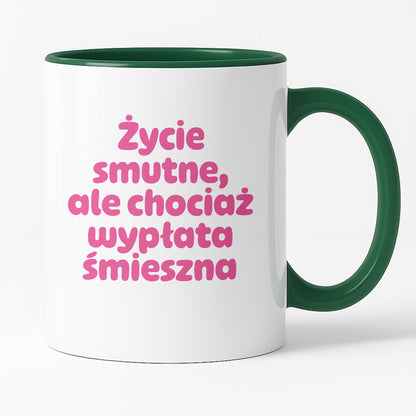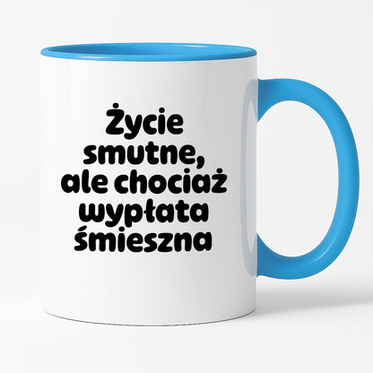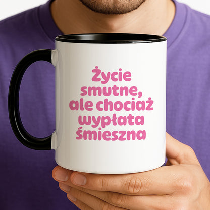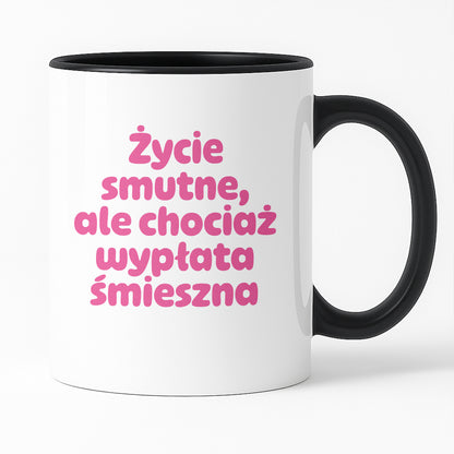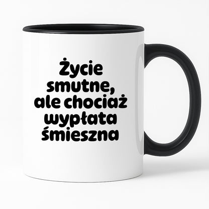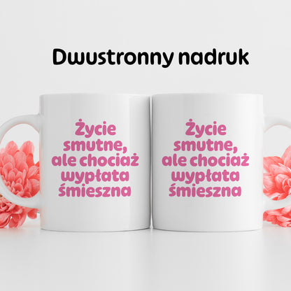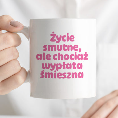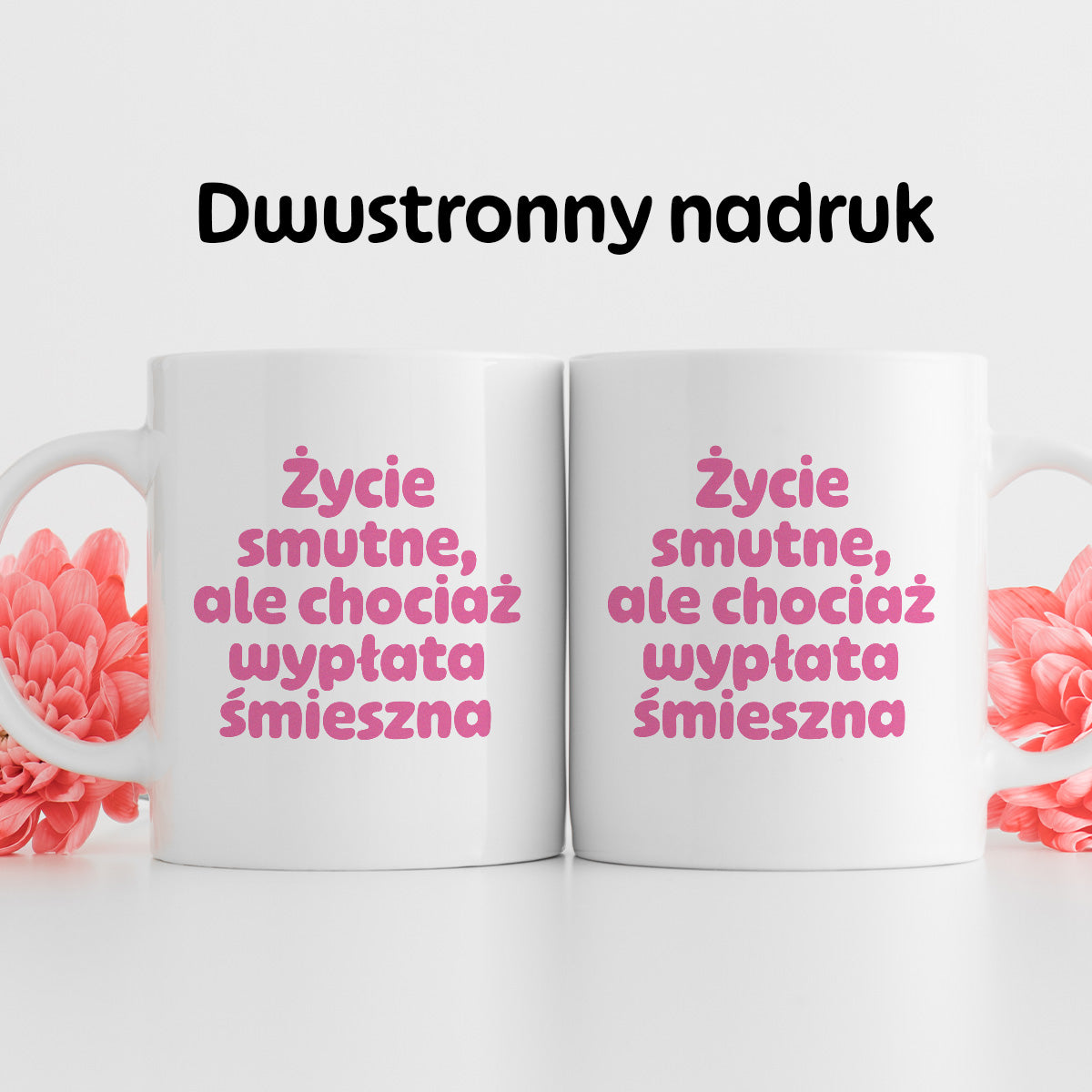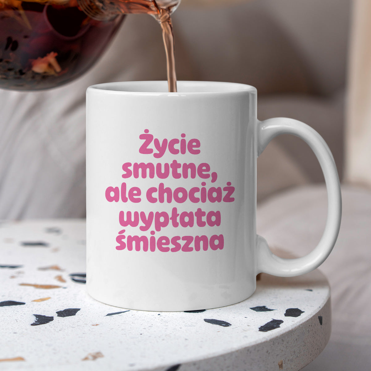 Kubek dla wszystkich, którzy rano wstają tylko dlatego, że trzeba... a potem patrzą na konto i śmieją się przez łzy. No cóż — życie bywa ciężkie, ale przynajmniej konto bankowe potrafi rozbawić.