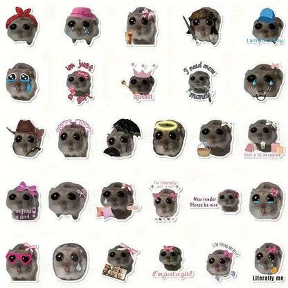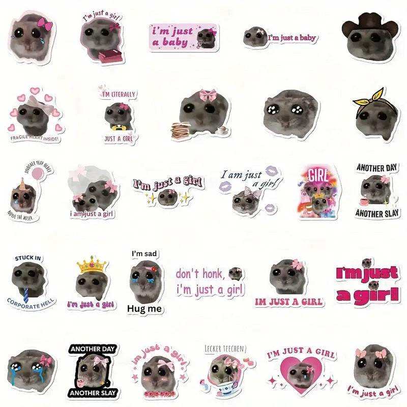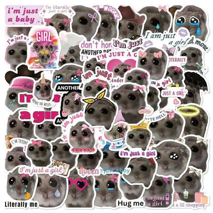 Naklejki ze smutnym chomiczkiem w stylu I'm just a girl - zestaw 50 sztuk