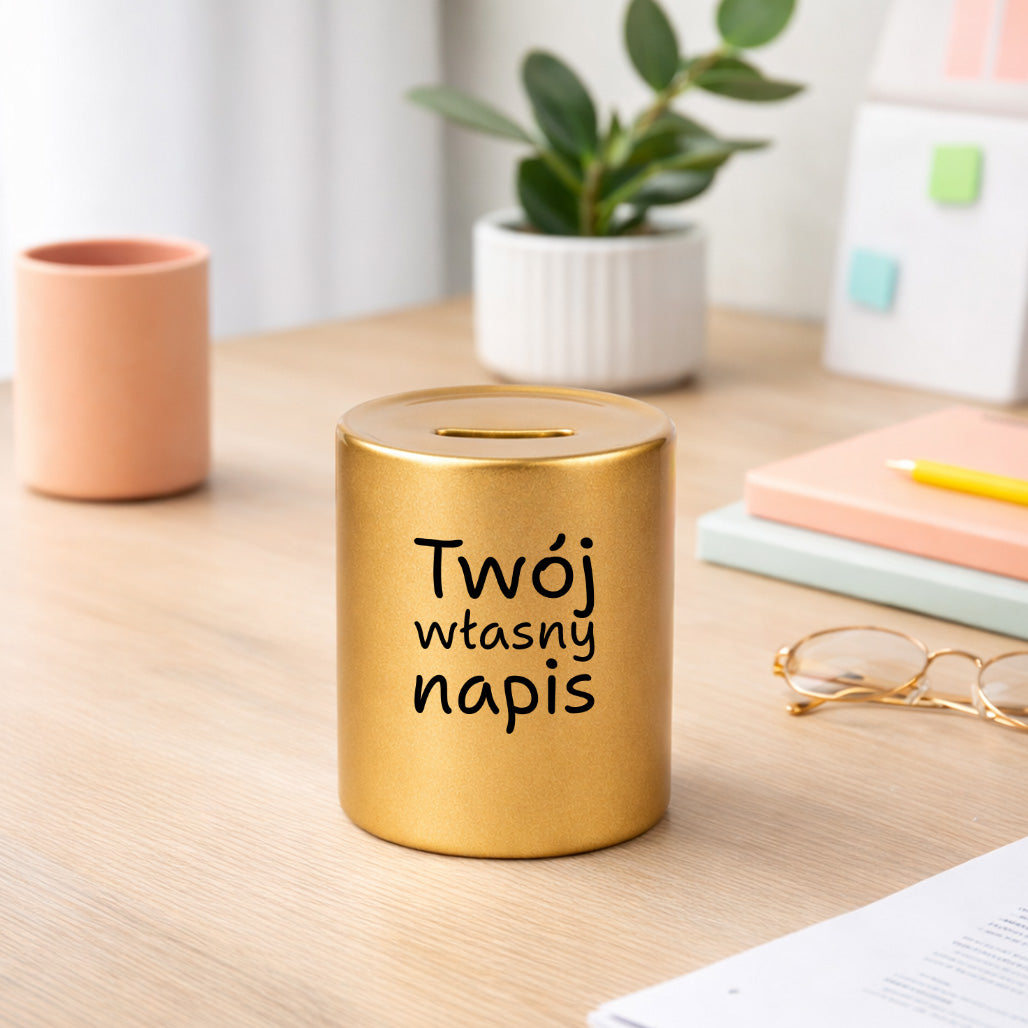 Możesz umieścić na niej własny napis, dzięki czemu skarbonka staje się w pełni personalizowanym prezentem – dokładnie takim, jaki chcesz.